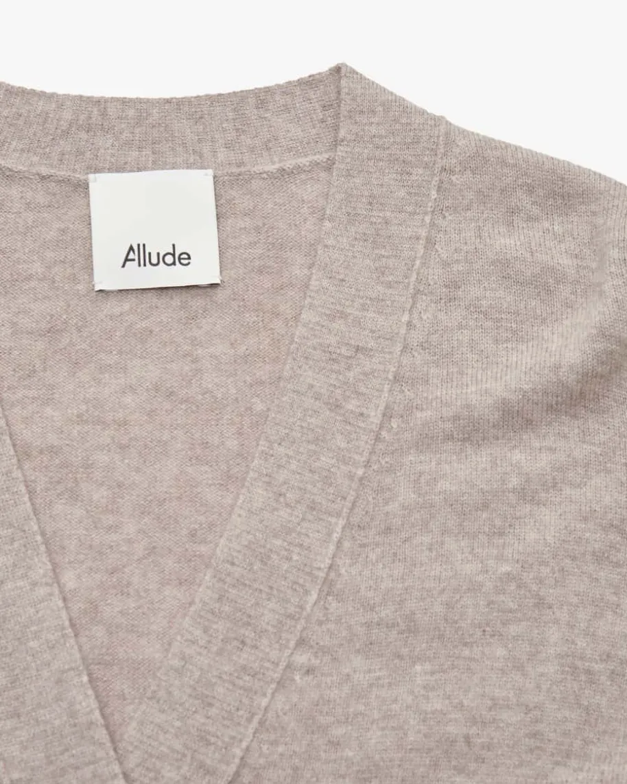 Strickjacke für Damen von Allude in Sand. Das Münchner Label wurde 1993 vonAndrea Karg gegründet und ist bekannt für luxuriöse Strickmode aus edlemCashmere. Auch dieses melierte Feinstrick-Modell überzeugt mit hochwertigemSchurwolle-Cashmere-Mix, der für angenehmen Tragekomfort sorgt. Modische Inside-Out-Nähte runden den ansonsten cleanen Basic-Style harmonisch ab.