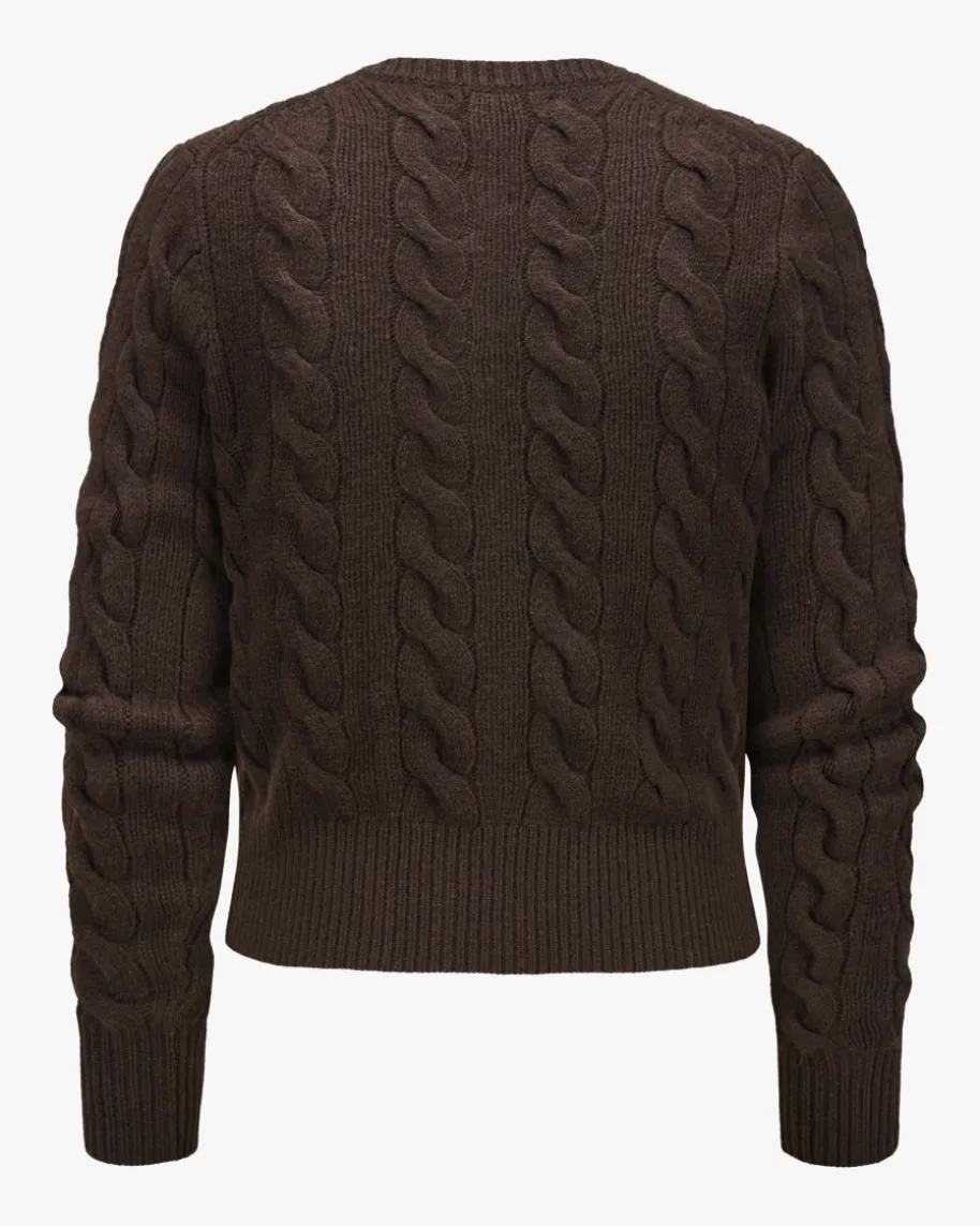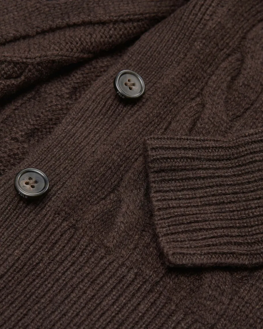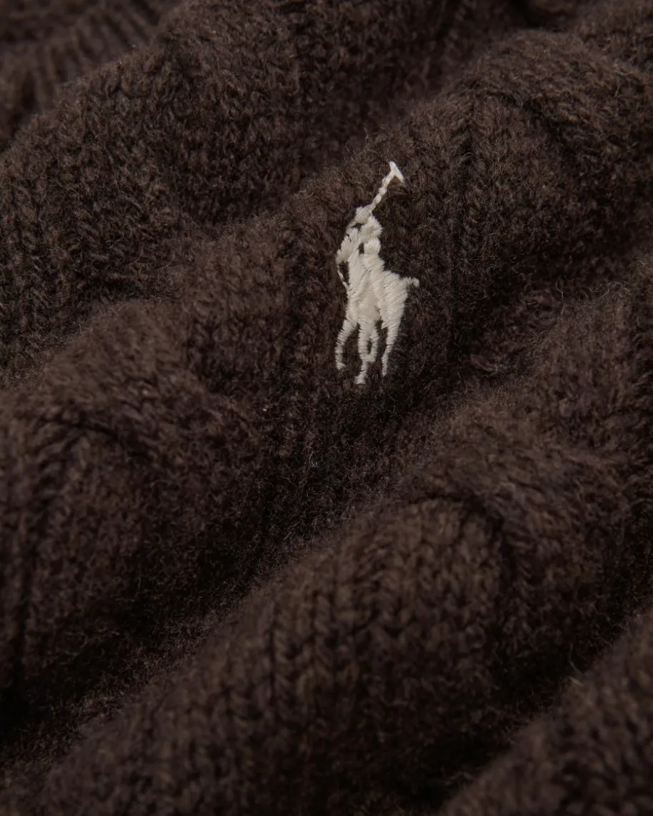 Strickjacke für Damen von Polo Ralph Lauren in Dunkelbraun. Qualität, Lifestyle,Authentizität und zeitlose Eleganz – all das zeichnet die Marke Polo RalphLauren seit nunmehr 50 Jahren Firmengeschichte aus. Das Modell begeistert durchden besonders weichen Wolle-Cashmere-Mix mit hohem Tragekomfort. Stilvollabgerundet wird das Design durch die kontrastierende Logo-Stickerei auf derBrust sowie das klassische Zopf-Strickmuster.
