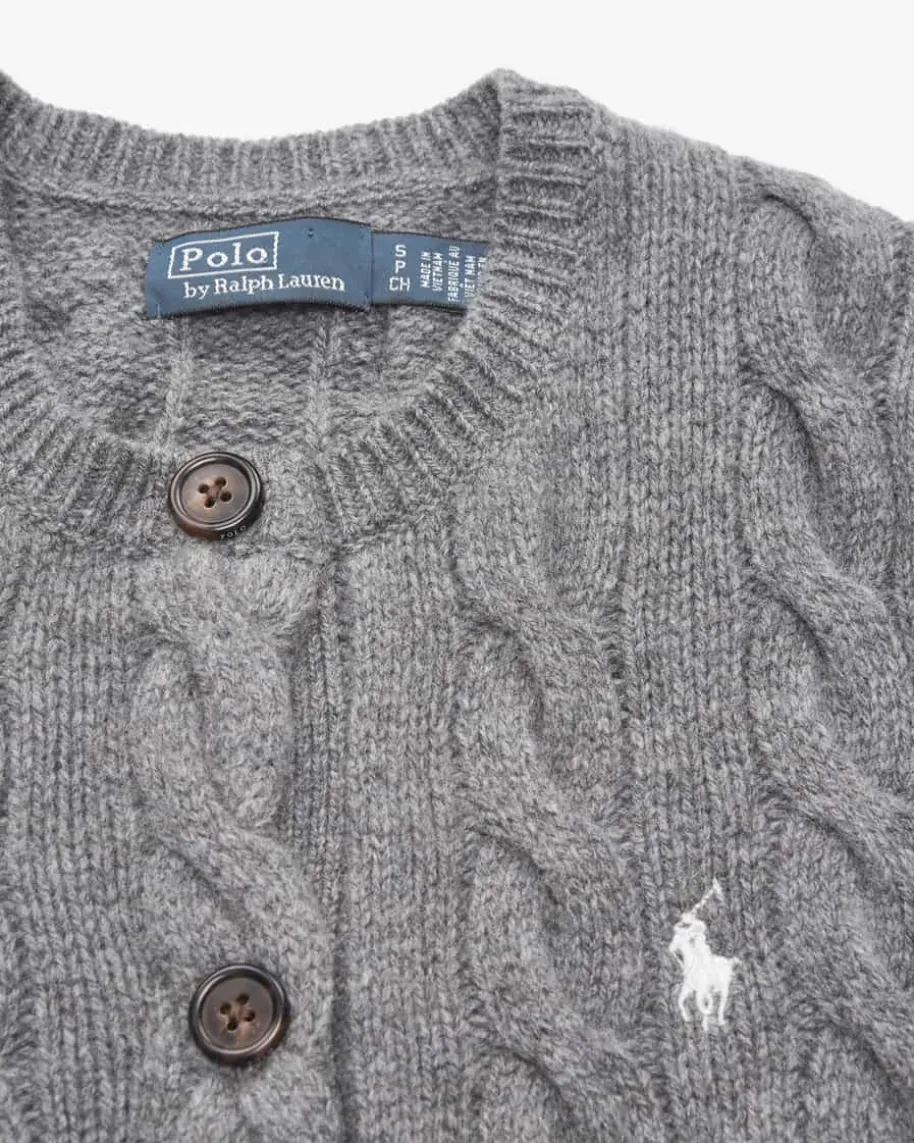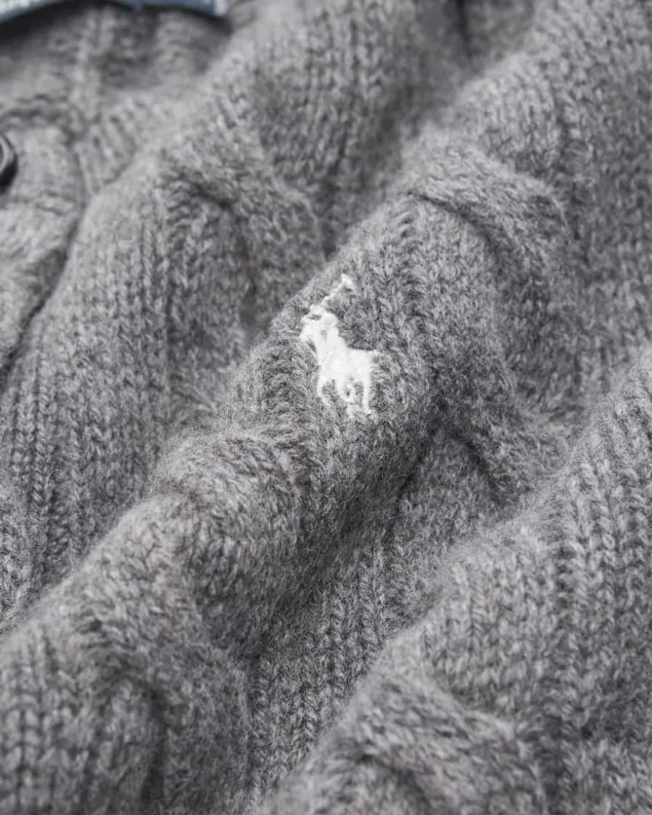 Strickjacke für Damen von Polo Ralph Lauren in Anthrazit. Qualität, Lifestyle,Authentizität und zeitlose Eleganz – all das zeichnet die Marke Polo RalphLauren seit nunmehr 50 Jahren Firmengeschichte aus. Das Modell begeistert durchden besonders weichen Wolle-Cashmere-Mix mit hohem Tragekomfort. Stilvollabgerundet wird das Design durch die kontrastierende Logo-Stickerei auf derBrust sowie das klassische Zopf-Strickmuster.