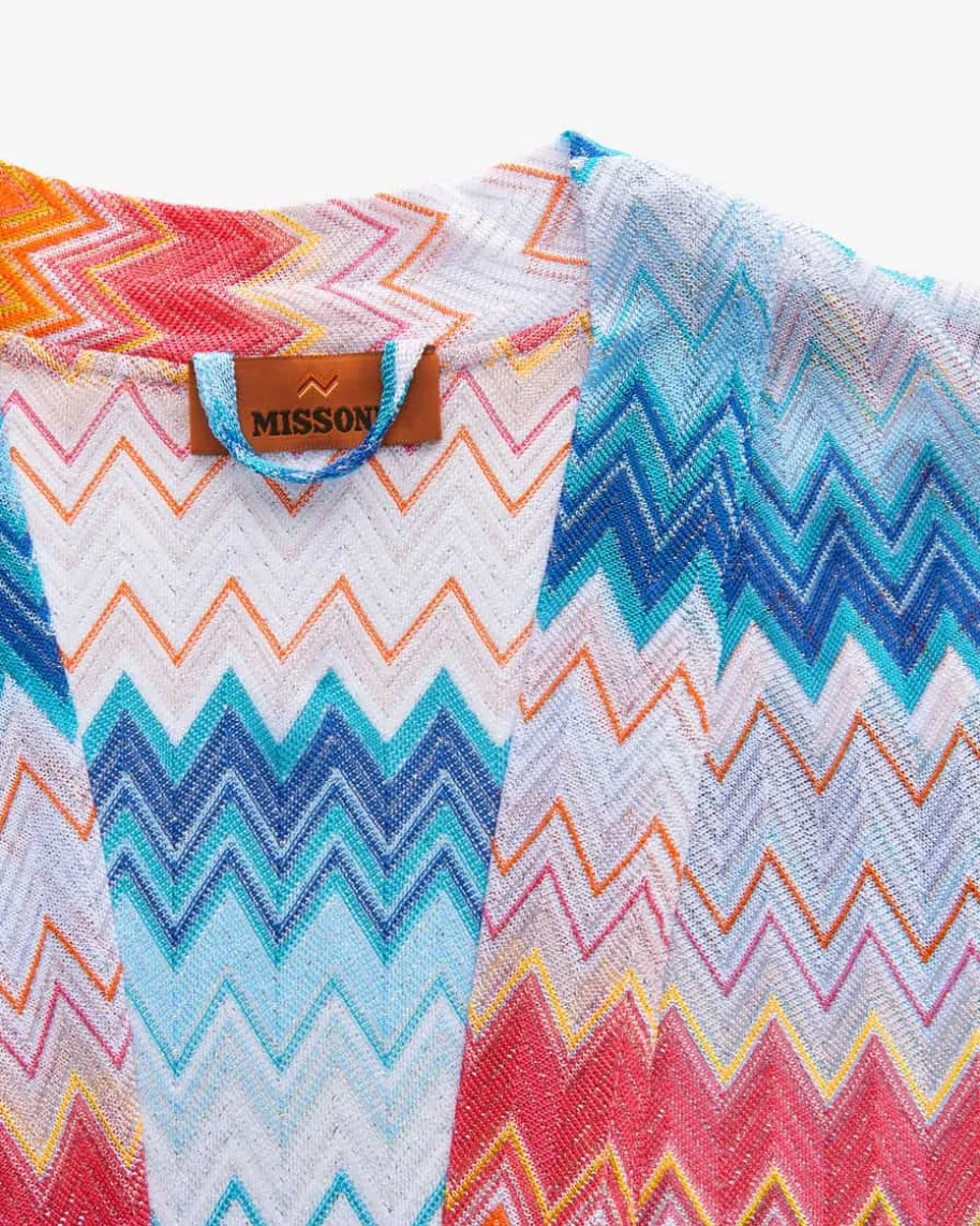 Strickmantel für Damen von Missoni in Bunt und Silber. Das labeltypische Zick-Zack-Design überzeugt dank changierender Glitzer-Fasern und legererSchnittführung. Die semi-transparente Aufmachung und die extra-lange Optikschaffen einen einzigartigen Look für stilvolle Auftritte.
