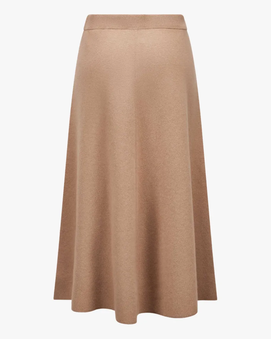 Strickrock für Damen von Allude in Camel. Das Münchner Label wurde 1993 vonAndrea Karg gegründet und ist bekannt für luxuriöse Strickmode aus edlemCashmere. Auch dieses Modell überzeugt mit edlem Schurwoll-Cashmere-Mix infeiner Strick-Aufmachung, während die cleane Aufmachung und die ausgestelltePassform einen eleganten und femininen Look verleihen.