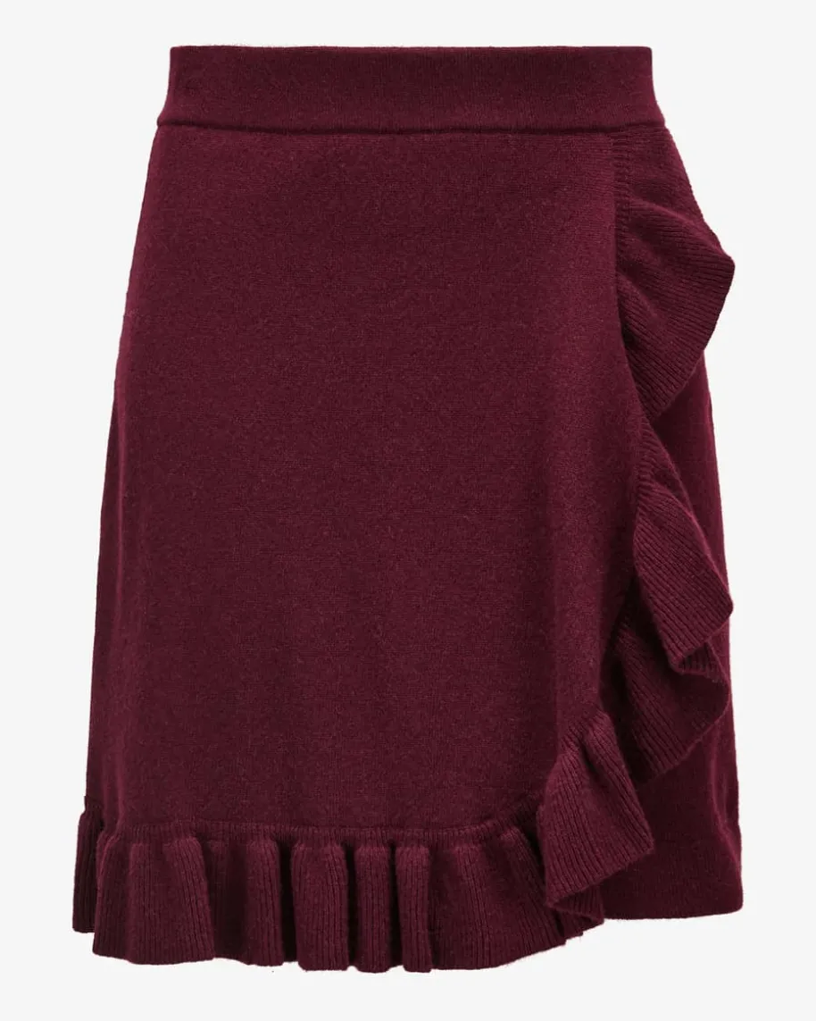 Strickrock für Damen von Allude in Bordeaux. Das Münchner Label wurde 1993 vonAndrea Karg gegründet und ist bekannt für luxuriöse Strickmode aus edlemCashmere. Auch dieses Modell überzeugt mit edlem Schurwoll-Cashmere-Mix infeiner Strick-Aufmachung, während die Rüschen-Details einen elegant,romantischen Look verleihen.