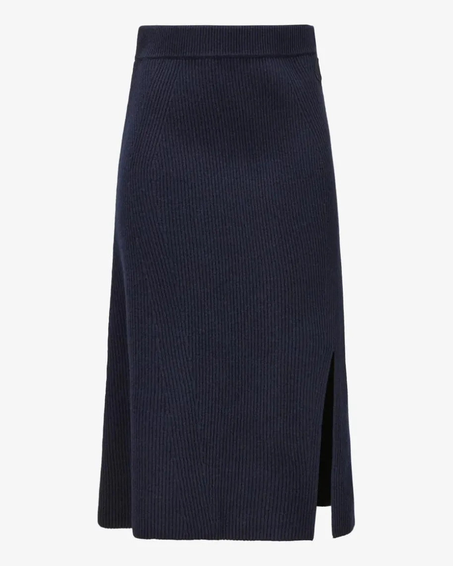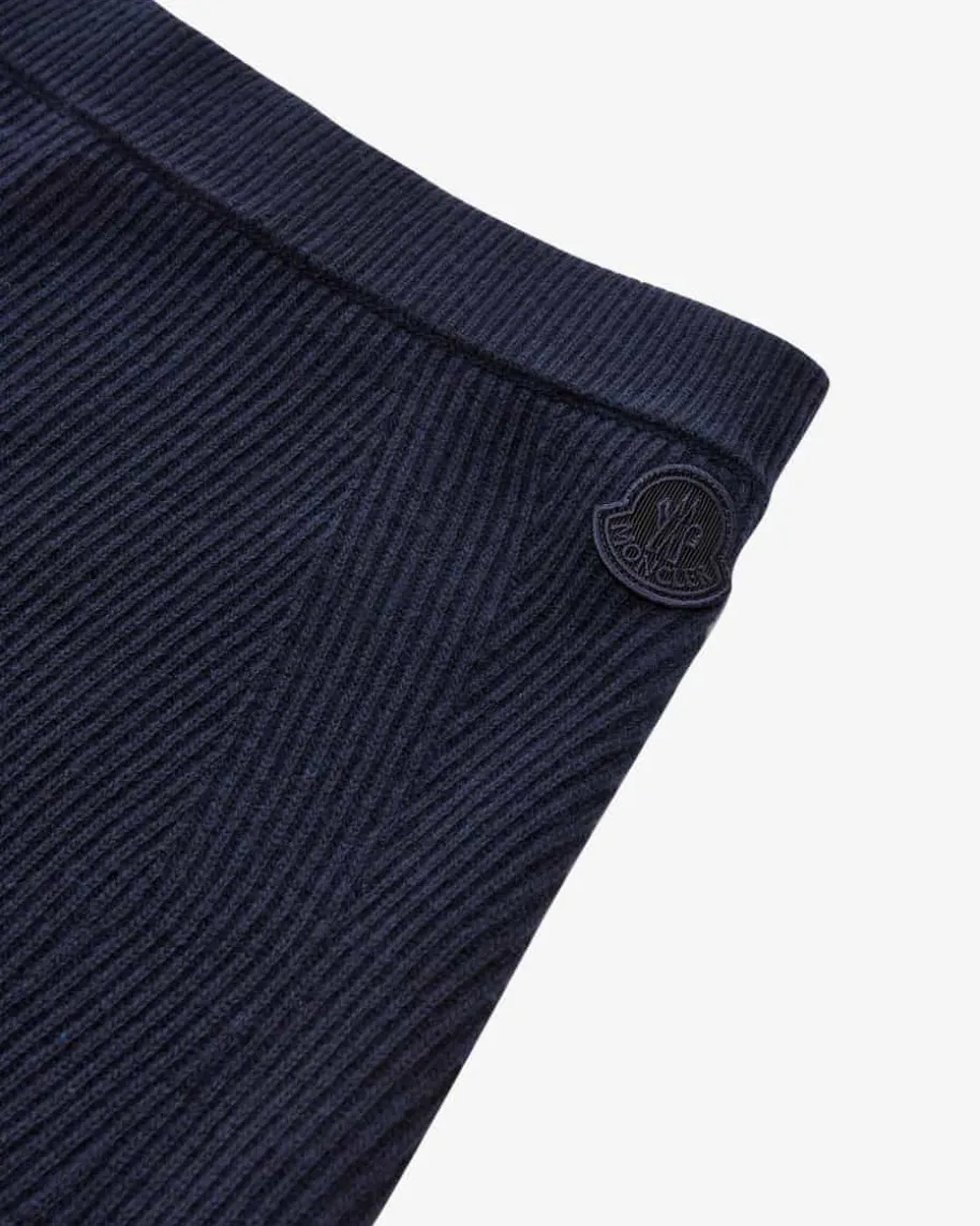 Strickrock für Damen von Moncler in Navy. Das Strick-Modell präsentiert sich mitausgestellter Passform und femininer Silhouette, während der weiche Schurwolle-Cashmere-Mix in Rippstrick-Verarbeitung für angenehmen Tragekomfort sorgt – Einvielseitiger Begleiter für modische Looks.