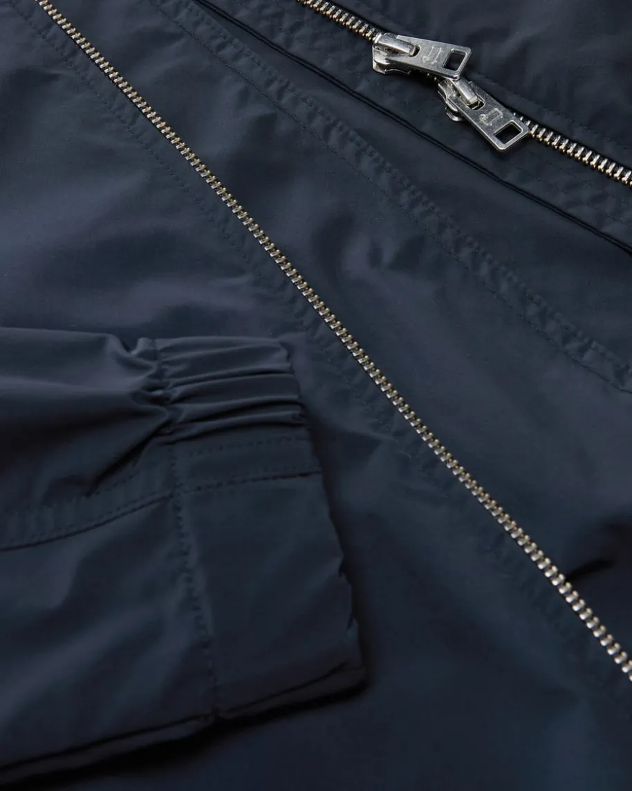 Summer Bomberjacke für Damen von Woolrich in Navy. Dieses Modell in klassischemBlouson-Schnitt überzeugt in schlichter Eleganz, welche dank kontrahierendenReißverschluss einen zeitlosen Begleiter für vielseitige Styles schafft.