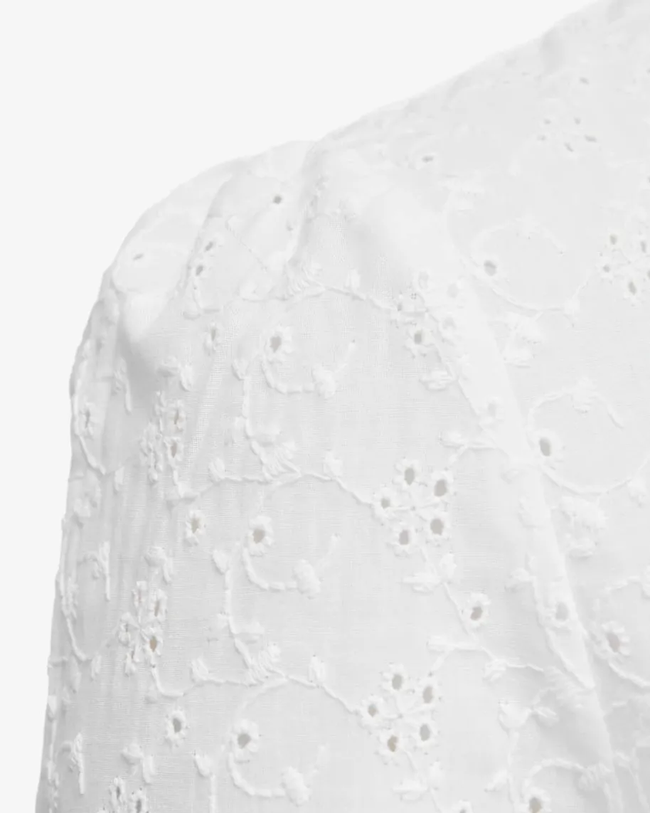 Suri Dirndlbluse für Damen von Kinga Mathe in Weiß. Das semi- transparenteModell präsentiert sich dank des Lochmusters als modischer Begleiter für IhrenTrachten-Look, während der dezente Stehkragen einen modischen Hingucker kreiert.