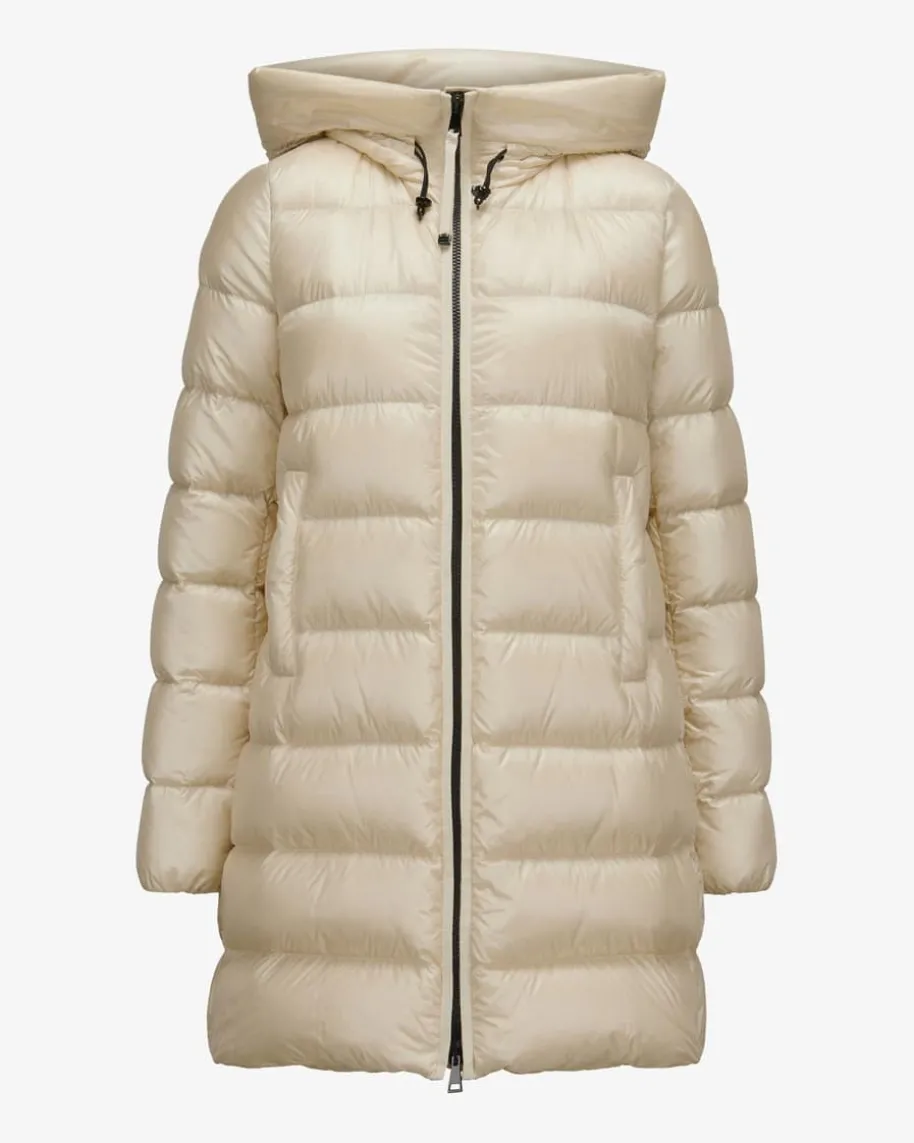 Suyenne Daunenmantel für Damen von Moncler in Creme. Denkt man an hochwertige,warme Daunenjacken, kommt einem unweigerlich das italienische TraditionslabelMoncler in den Sinn. Auch mit diesem Modell präsentiert das Label dank derhochwertigen Daunen-Feder-Füllung einen perfekten Begleiter für vielseitigeWinter-Looks, welcher durch das voluminöse Steppmuster und das dezentchangierende Material gekonnt in Szene gesetzt wird.