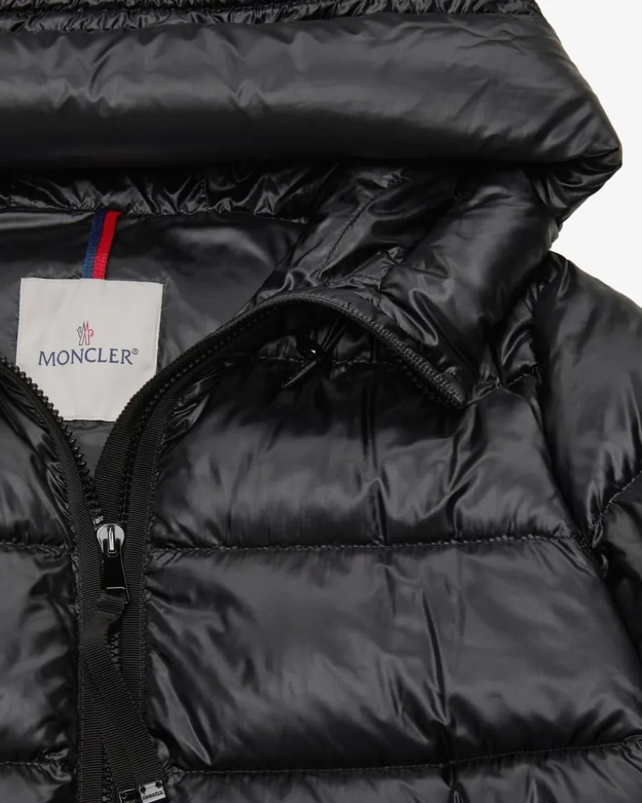 Suyenne Daunenmantel für Damen von Moncler in Schwarz. Denkt man an hochwertige,warme Daunenjacken, kommt einem unweigerlich das italienische TraditionslabelMoncler in den Sinn. Auch mit diesem Modell präsentiert das Label dank derhochwertigen Daunen-Feder-Füllung einen perfekten Begleiter für vielseitigeWinter-Looks, welcher durch das voluminöse Steppmuster und das dezentchangierende Material gekonnt in Szene gesetzt wird.