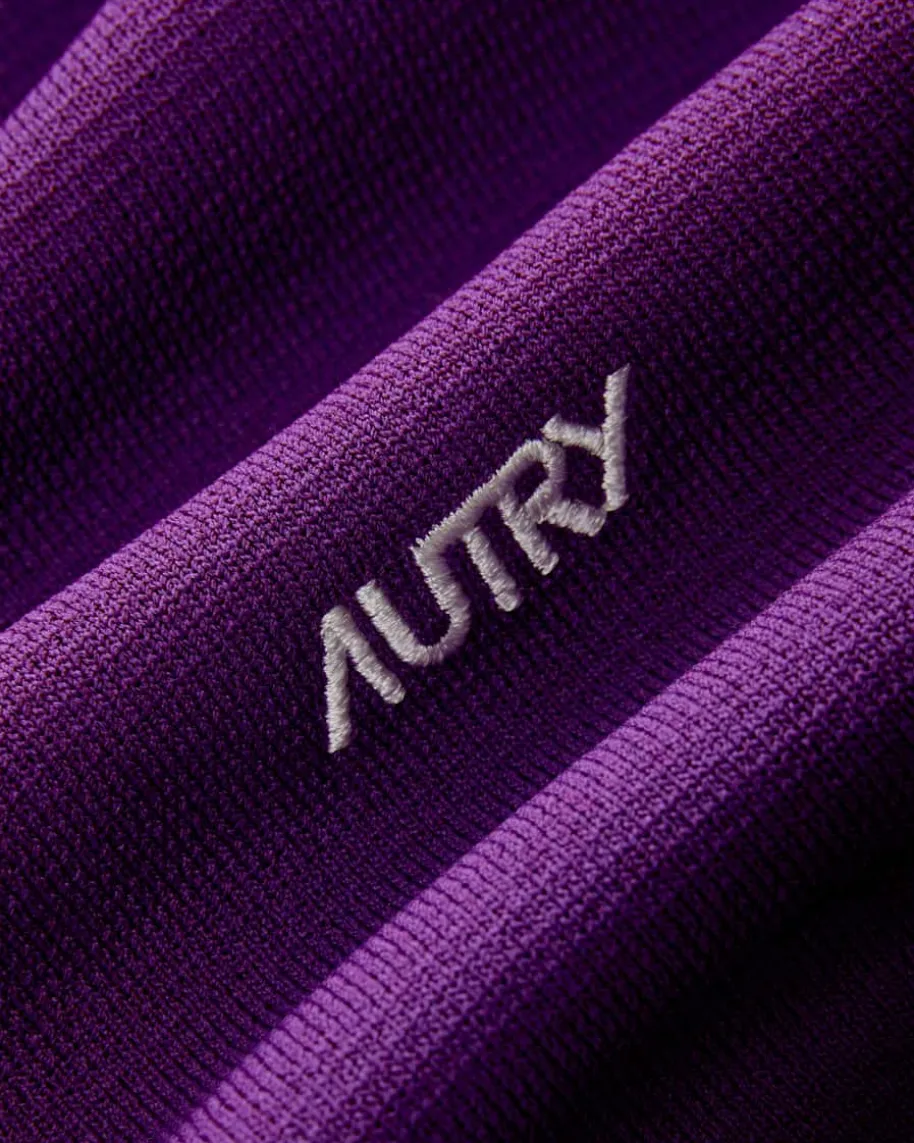 Jacke für Damen von Autry in Violett und Weiß. Das Modell in Strick-Aufmachung überzeugt durch elastische Materialqualität und sorgt somit fürzusätzlichen Komfort. Komplementieren sie den sportiven Retro-Look mit derpassenden Hose.