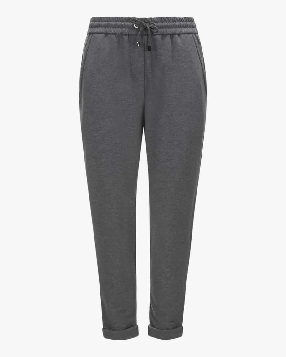 Sweathose für Damen von Brunello Cucinelli in Anthrazit. Das verkürzte Modellaus angenehmem Baumwoll-Seiden-Mix begeistert mit weichem Griff, während dieschlichte Aufmachung durch changierende Ketten-Applikationen mit besonderemCharme vollendet wird.