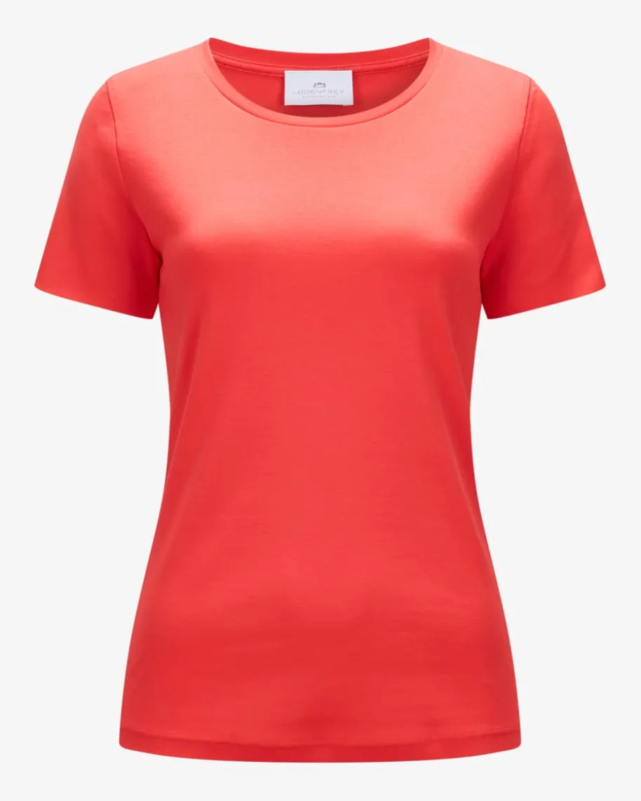T-Shirt für Damen von LODENFREY in Erdbeere. Das Modell präsentiert sich dankcleaner Aufmachung als optimaler Alltagsbegleiter. Die elastische Baumwolleschmiegt sich optimal an und sorgt für angenehme Tragemomente.