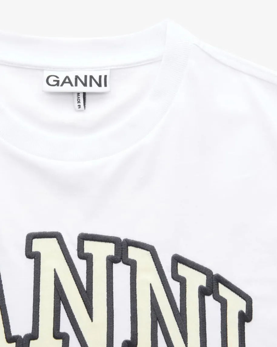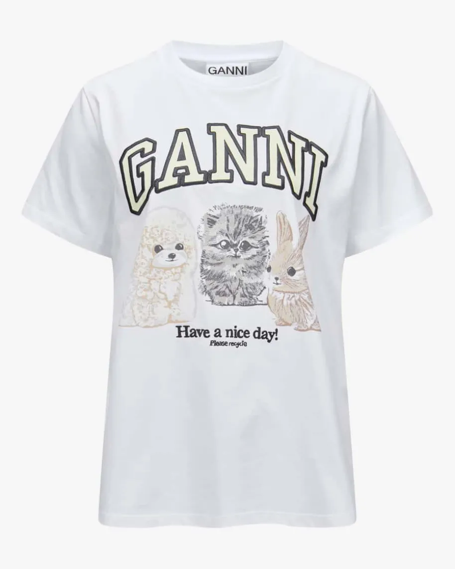 T-Shirt für Damen von Ganni in Weiß. Das Modell in weiter Schnittführungüberzeugt mit angenehmer Baumwoll-Qualität, während klassische Details inKombination mit dem netten Animal-Print einen besonderen Look kreieren.
