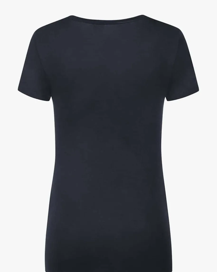 T-Shirt für Damen von Majestic Filatures in Navy. Ein perfektes Basic – Dasleicht taillierte Modell überzeugt dank dem elastischen Material-Mix und derweichen Soft-Touch-Qualität mit hohem Tragekomfort.