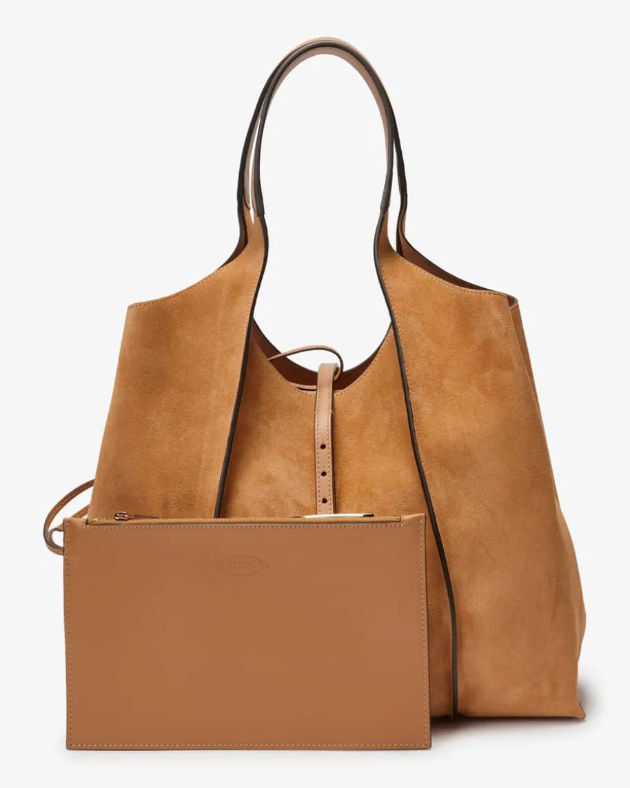 T Timeless Shopper für Damen von Tod’s in Camel. Das Modell aus hochwertiggenarbtem Leder besticht zusammen mit dem ikonischen logogeprägten T Timeless-Metallanhänger in schlichter Eleganz, während das geräumige Hauptfach sowie dasherausnehmbare Necessaire genug Stauraum für all Ihre Alltags-Essentials bietet.
