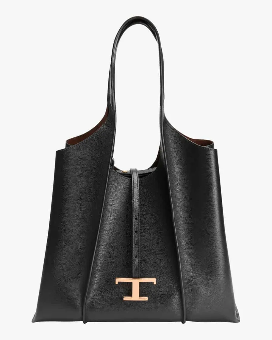 T Timeless Shopper für Damen von Tod’s in Schwarz. Das Modell aus hochwertiggenarbtem Leder besticht zusammen mit dem ikonischen logogeprägten T Timeless-Metallanhänger in schlichter Eleganz, während das geräumige Hauptfach sowie dasherausnehmbare Necessaire genug Stauraum für all Ihre Alltags-Essentials bietet.