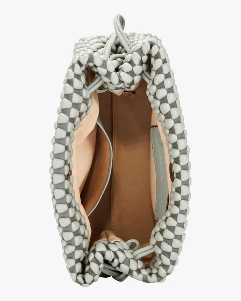 Tango Umhängetasche von Tissa Fontaneda in Mint. Das 2010 gegründete Labelvereint Handwerkliches Können und Liebe zum Detail. Die sofort erkennbare„Bubble Bag“ ist zum Markenzeichen der Kollektion Tissa Fontaneda geworden.Auch dieses Modell begeistert in charakteristischer Aufmachung mitstrukturierter Optik, während die Quasten-Applikation den letzten Schliffverleiht.