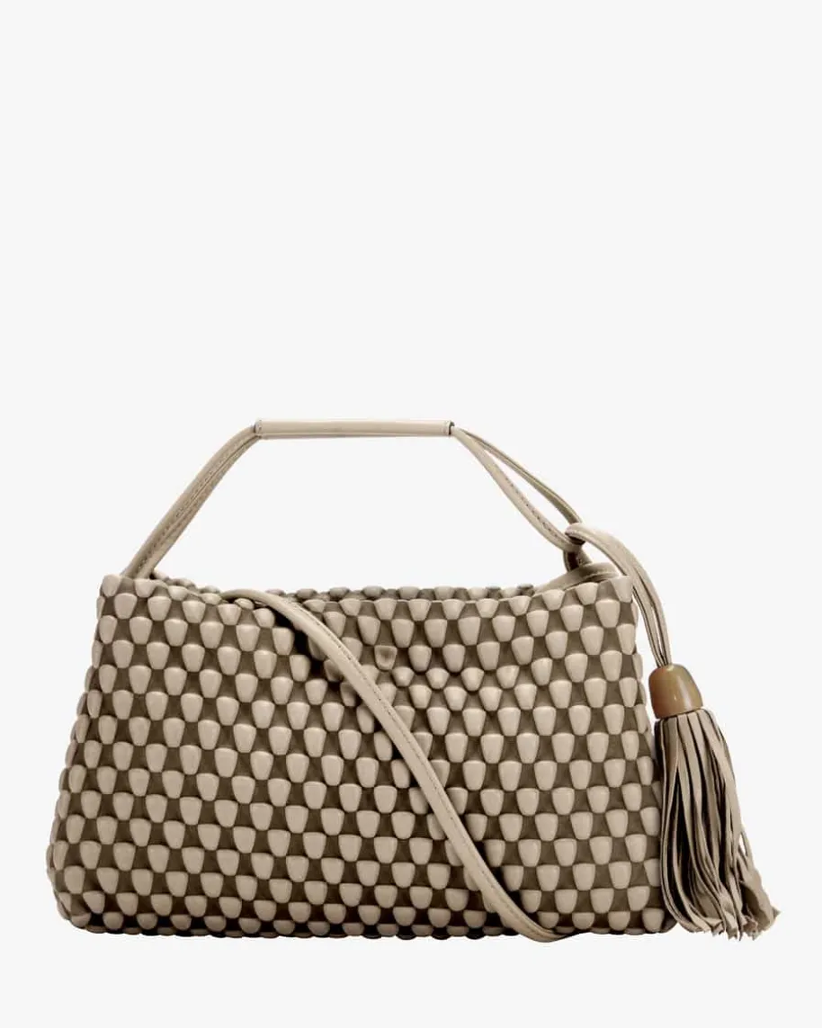 Tango Umhängetasche von Tissa Fontaneda in Taupe. Das 2010 gegründete Labelvereint Handwerkliches Können und Liebe zum Detail. Die sofort erkennbare„Bubble Bag“ ist zum Markenzeichen der Kollektion Tissa Fontaneda geworden.Auch dieses Modell begeistert in charakteristischer Aufmachung mitstrukturierter Optik, während die Quasten-Applikation den letzten Schliffverleiht.