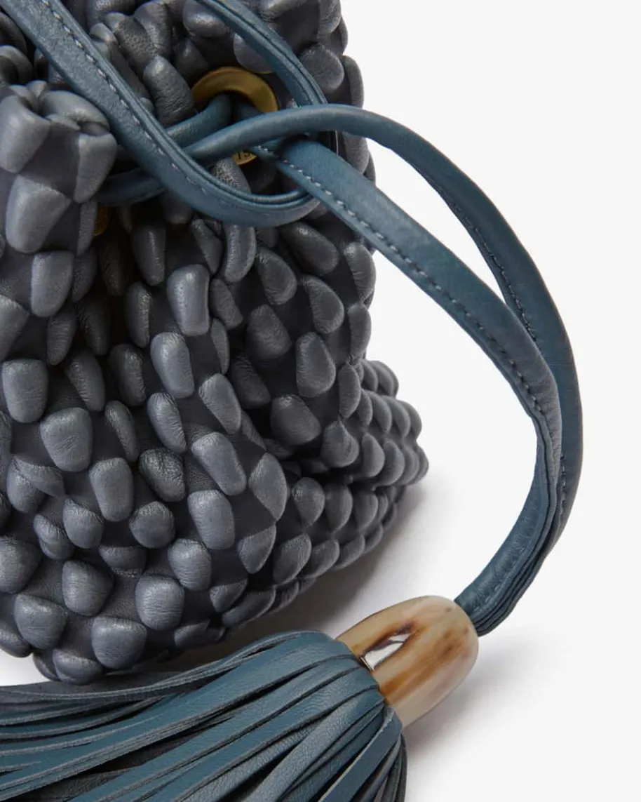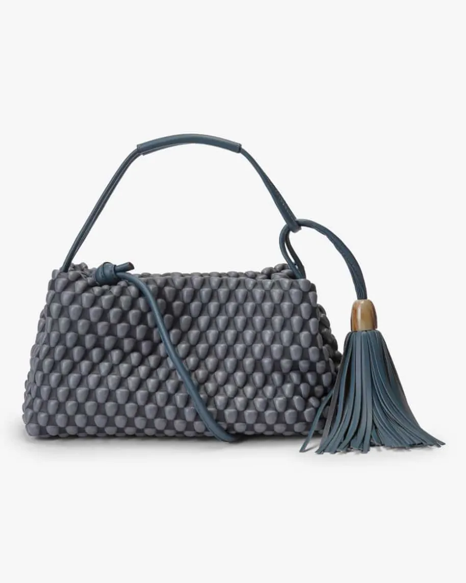 Tango Umhängetasche von Tissa Fontaneda in Rauchblau. Das 2010 gegründete Labelvereint Handwerkliches Können und Liebe zum Detail. Die sofort erkennbare„Bubble Bag“ ist zum Markenzeichen der Kollektion Tissa Fontaneda geworden.Auch dieses Modell begeistert in charakteristischer Aufmachung mitstrukturierter Optik, während die Quasten-Applikation den letzten Schliffverleiht.
