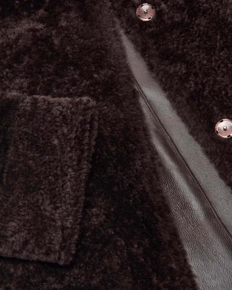Teila Wende-Lammfelljacke für Damen von Arma in Dark Chocolate. Das Label isteinSynonym für exquisite und zeitlose Lederbekleidung. Das Modell zeichnet sichdurch die praktische Wende-Funktion aus. Während das weiche Merinillo Alba-Shearling mit wolliger Haptik punktet, verleiht das Soft-Touch-Leder in matterOptik dem Gesamtbild eine edle Note.