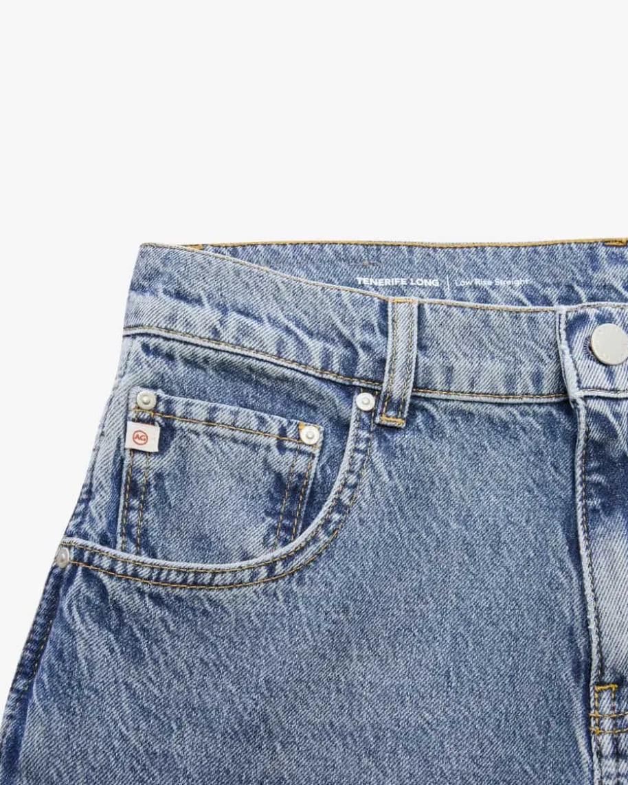 Tenerife Long Jeans Low Rise Straight für Damen von AG Jeans in Blau. Das Modellpräsentiert sich mit angenehmem Baumwoll-Mix in Vintage-Optik mit typischenDenim-Details. Dezente Zierstickereien auf den Taschen und die niedrige Leibhöherunden den modischen Style harmonisch ab.
