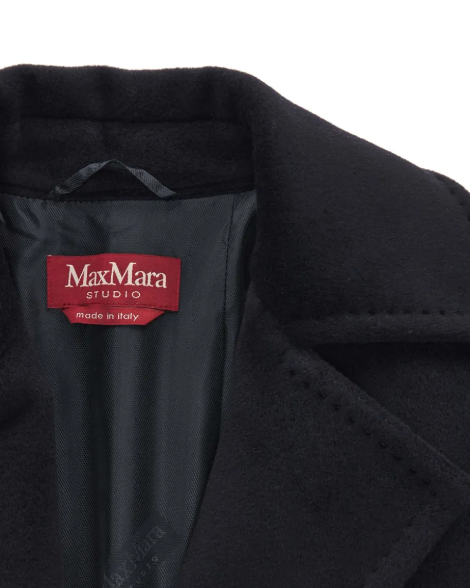 Tenzone Wollmantel für Damen von Max Mara Studio in Nachtblau. Weiblich, modern,tragbar – Max Maras femininere Linie. Auch dieses Modell aus hochwertigem PureNew Wool Schurwolle, überzeugt mit angenehmen Tragemomenten, während dasklassische Design den zeitlosen Look harmonisch abrundet.