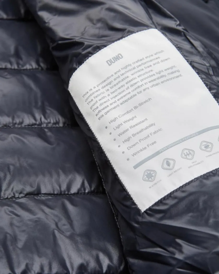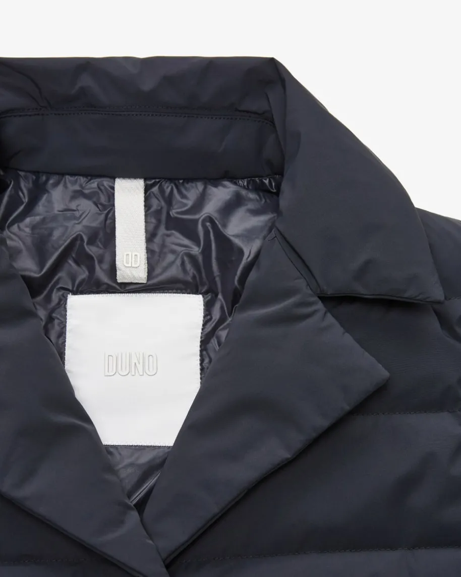 Tiara Licosa Daunenmantel für Damen von Duno in Navy. Technische Stoffe treffenauf minimalistisches Design – modische Performancejacken mit stilvollem City-Charakter. Dieses Modell überzeugt dank der leichten Daunen-Feder-Füllung sowieder wasserdichten und atmungsaktiven Eigenschaft als wetterfester Favorit,welcher durch die Blazer-Aufmachung einen eleganten Touch erhält.