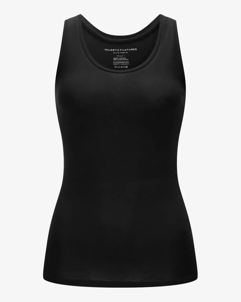 Top für Damen von Majestic Filatures in Schwarz. Ein perfektes Basic – Dasschlichte Modell überzeugt dank dem elastischen Material-Mix und der weichenSoft-Touch-Qualität mit hohem Tragekomfort.