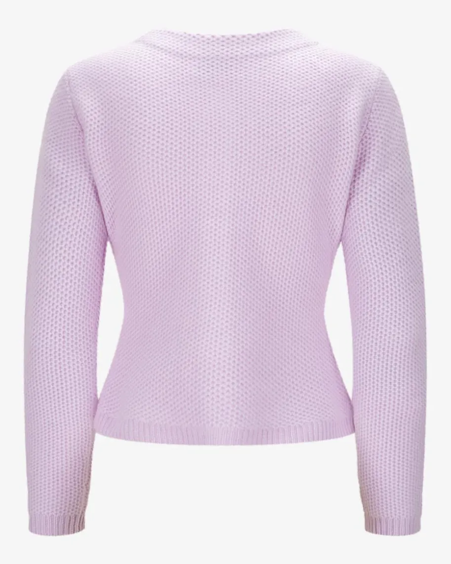 Trachten-Cashmere-Strickjacke für Damen von LODENFREY München 1842 in Flieder.Tradition und Moderne in perfektem Zusammenspiel – Das Modellbegeistert durch die klassische Linksstrick-Qualität, während Schmuckstein-Knöpfe den Trachten-Look charmant abrunden.