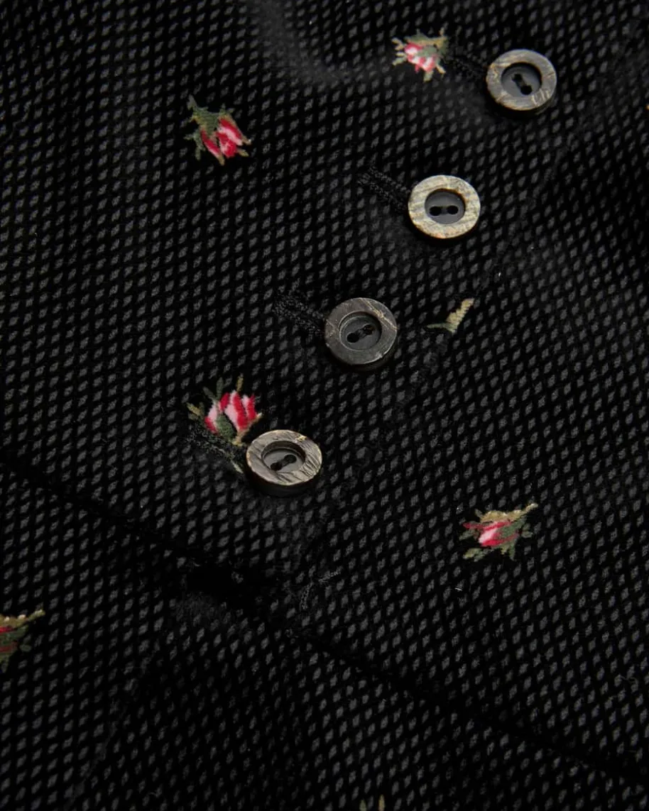 Trachtenkleid für Damen von Mothwurf in Schwarz und Dunkelgrün. Das Modellpräsentiert sich dank des floralen Allover-Dessins sowie der ausgestelltenPassform in femininer Aufmachung, während die weiche Baumwoll-Qualität einangenehmes Tragegefühl verspricht.