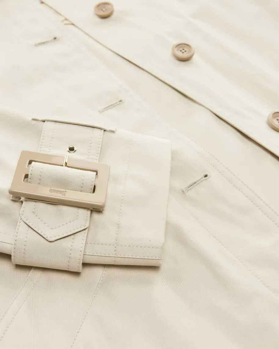 Trenchcoat für Damen von Herno in Sand. Dank zahlreicher klassischer Detailsavanciert das Modell zum zeitlosen Übergangs-Favoriten im verkürzten Schnitt.Zugleich verleiht die weite Passform dem Look ein modernes Update.