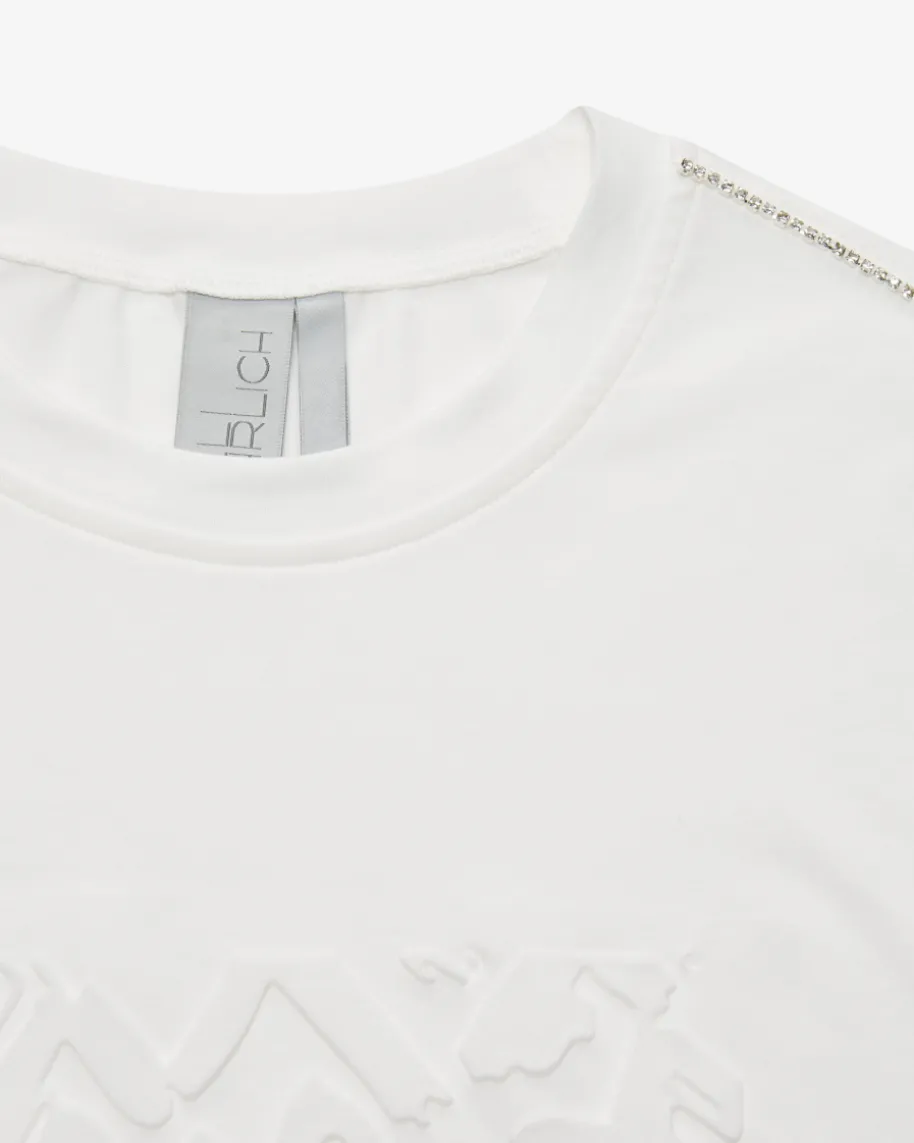 Ulli Ehrlich T-Shirt für Damen von Sportalm in Weiß. Das Modell überzeugt mitangenehmer Jersey-Qualität und angedeuteten Ärmeln, während der Strassstein-Besatz in Kombination mit den erhabenen Logo-Details in 3-D-Optik einen modernenLook mit sportivem Touch kreiert.