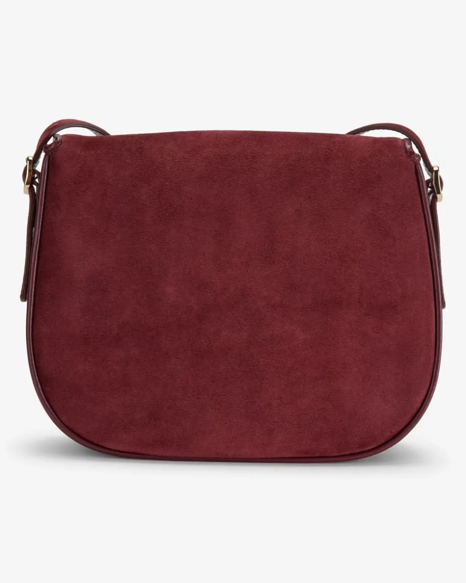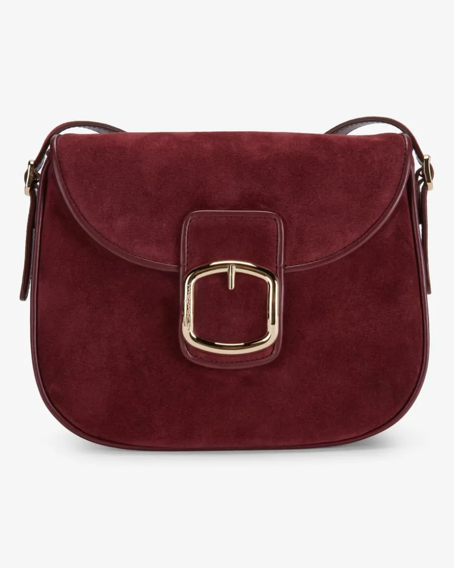 Umhängetasche für Damen von Santoni in Bordeaux. Das Modell punktet dank desgeräumigen Hauptfachs mit Funktionalität, während die hochwertige Veloursleder-Qualität einen modischen Favoriten für moderne Equestrian-Looks kreiert.