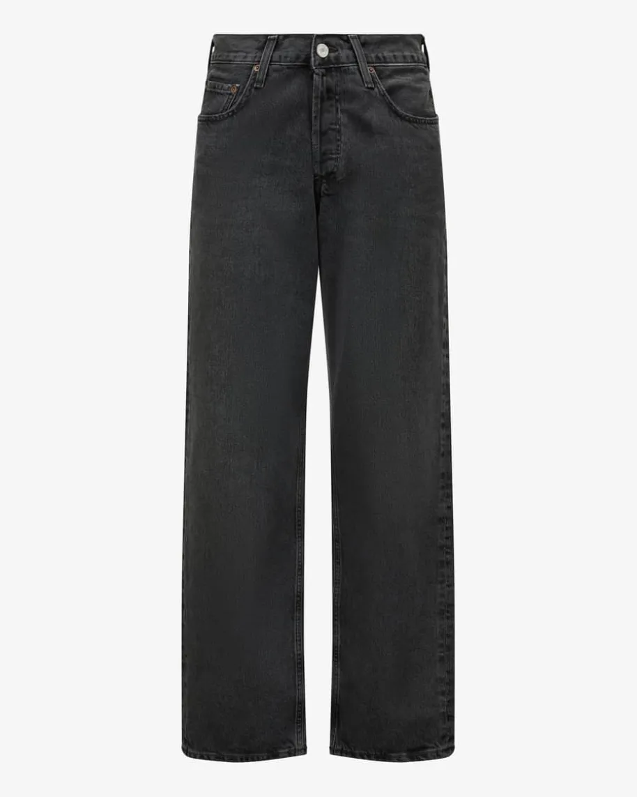 V-Waist Jeans Baggy für Damen von Agolde in Schwarz. Gefertigt aus hochwertigerBaumwolle präsentiert sich das Modell dank der denim-typischen Waschung inmodischer Aufmachung, während dezente Destroyed Details an Taschen und Saum dieJeans in einen Streetstyle-Favoriten verwandeln.