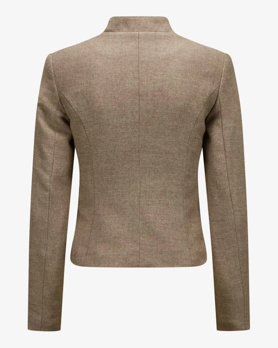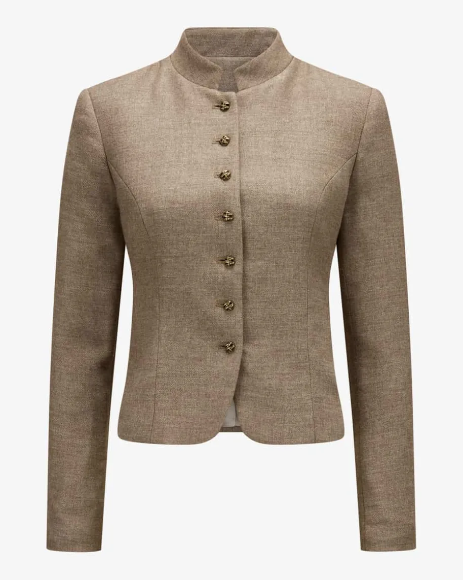 Valentina Trachtenblazer für Damen von Kinga Mathe in Braun. Das Modellüberzeugt dank hochwertigem Schurwoll-Viskose-Seiden-Mix in traditionellerAufmachung, welche durch klassische Details sowie die taillierte Silhouette einefeminine Passform erhält. Die raffinierten Knöpfe runden den melierten Lookharmonisch ab.