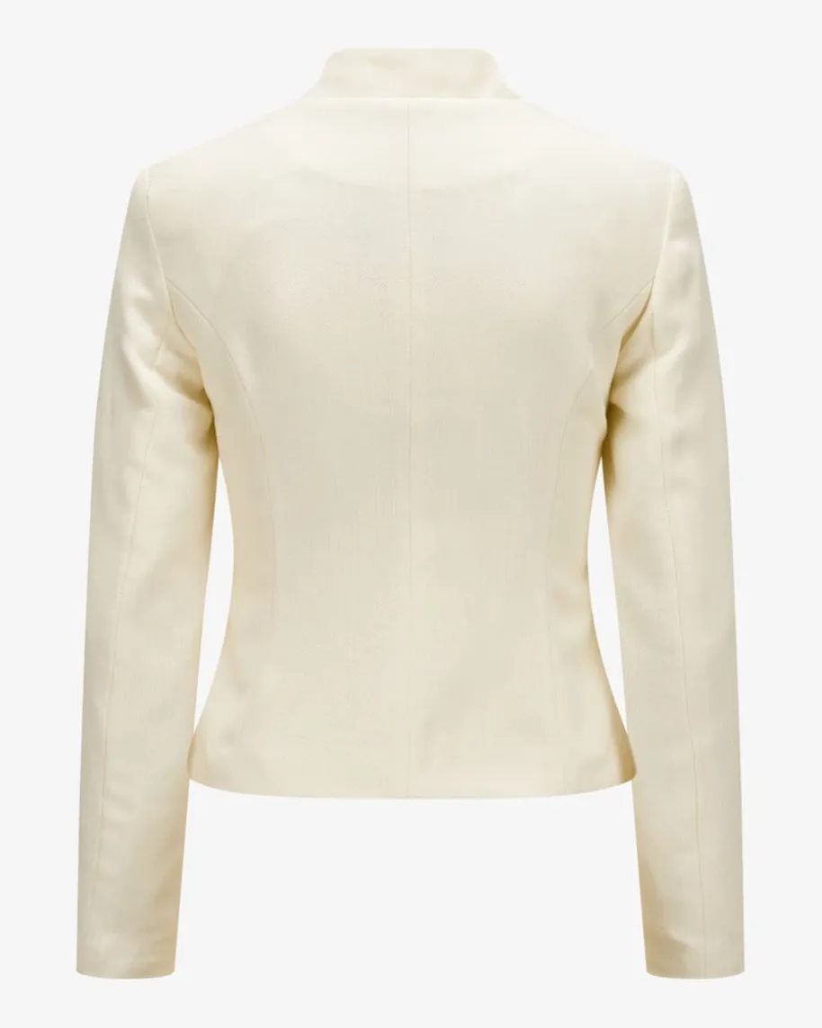 Valentina Trachtenblazer für Damen von Kinga Mathe in Creme. Das Modellüberzeugt dank hochwertigem Schurwoll-Viskose-Seiden-Mix in traditionellerAufmachung, welche durch klassische Details sowie die taillierte Silhouette einefeminine Passform erhält. Die raffinierten Knöpfe und das tonige Fischgrätmusterrunden den stilvollen Look harmonisch ab.