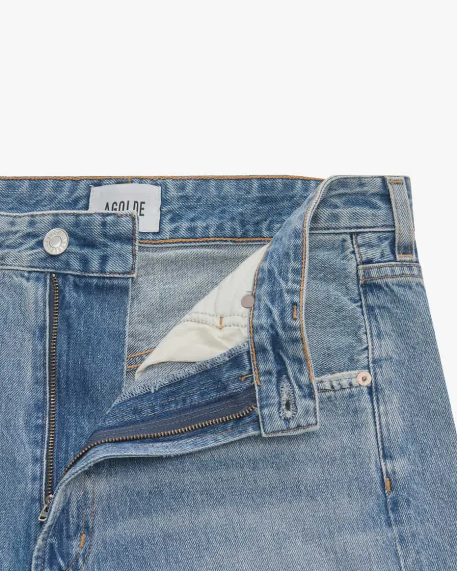 Vana Fold Jeans für Damen von Agolde in Blau. Das Modell überzeugt dankmodischem Used Look und charakteristischer Denim-Aufmachung, während die weitePassform und das Falten-Detail am Bund einen Streetstyle-Favoriten für IhreGarderobe kreieren.