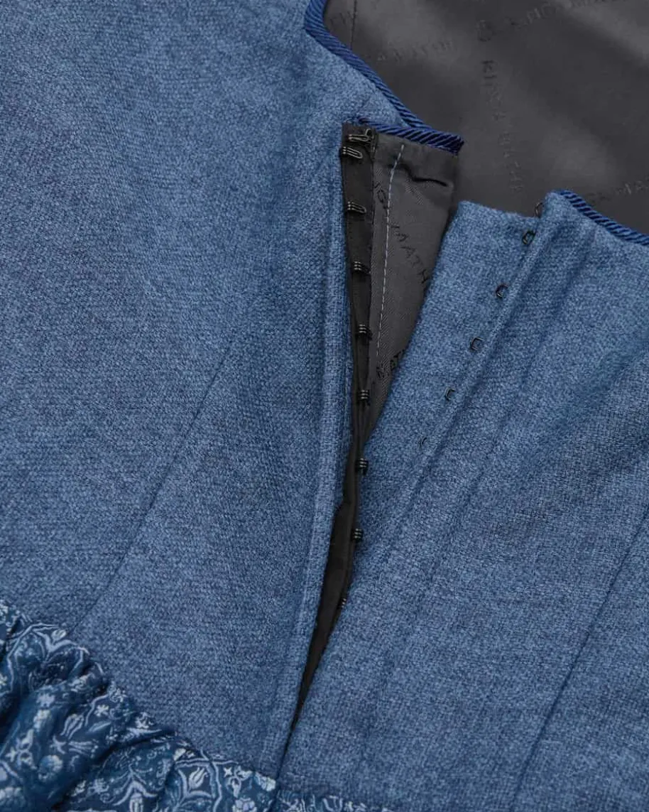 Vlora Dirndl lang mit Schürze für Damen von Kinga Mathe in Marine und Hellblau.Mit Liebe zum Detail entwirft das deutsche Label aufwendige Trachten-Kreationenmit dem gewissen Etwas und überzeugt Trachten-Liebhaber mit erlesenerStoffauswahl sowie kreativen Designs. Auch dieses Modell überzeugt dank desfloralen Dessins in traditioneller Aufmachung und wird durch tonigePaspelierungen stilvoll geziert. Während der Unterrock mit Volant-Saum einefeminine Passform verleiht, komplettiert die changierende Schürze mit Seide dengemusterten Rock harmonisch.