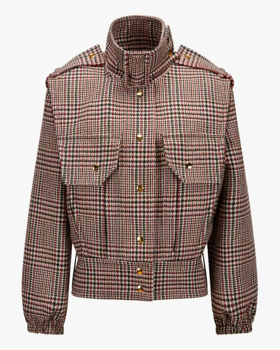 Volume Belted Woll-Blouson für Damen von Patou in Schwarz, Rot und Creme. DasPariser Label wurde 2019 neu interpretiert und verbindet feminine Mode mitCouture-Anspruch und Nachhaltigkeit. Auch dieses Modell begeistert mitraffinierter Silhouette und einem Mix aus Equestrian- und Biker-Vibes, währenddas klassische Karo-Muster und die weiche Schurwoll-Verarbeitung den modernenStyle gekonnt abrunden.