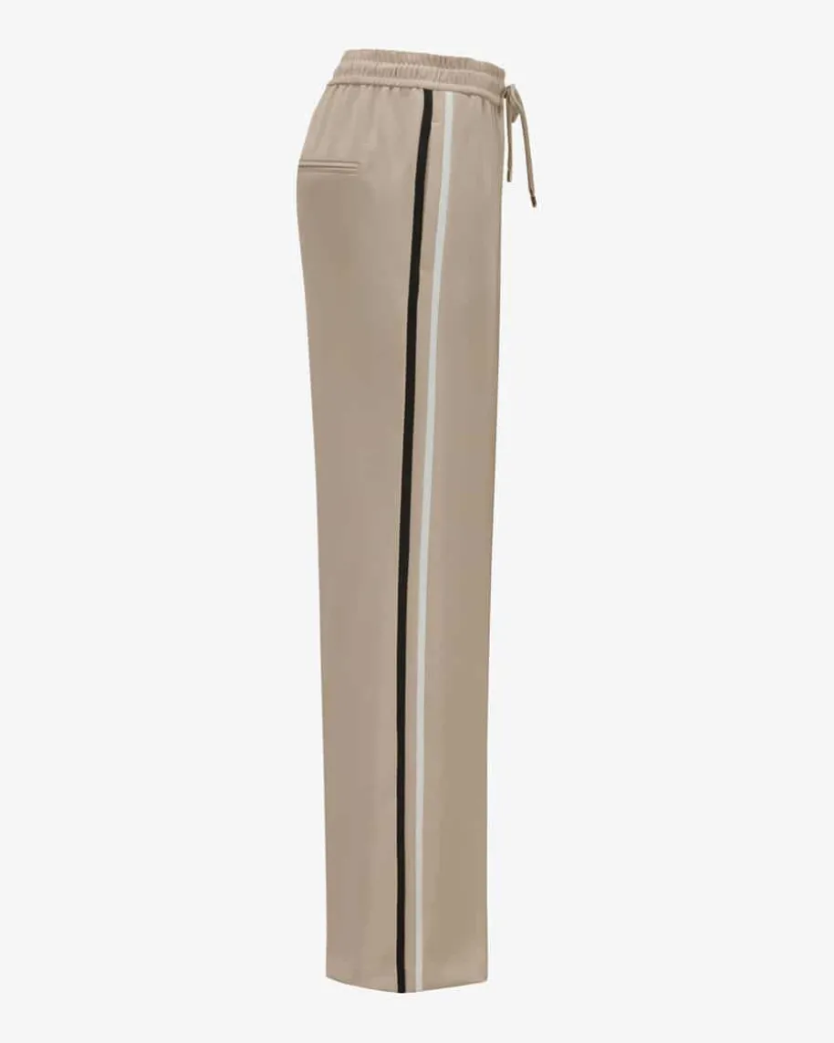 Washington Hose Wide Fit für Damen von Marc Cain in Beige. Das Modell begeistertdank der recycelten Materialverarbeitung als nachhaltiger Favorit mit Sinn fürStil, während klassische Details sowie kontrastierende Volant-Streifen dieperfekte Balance aus Eleganz und Gelassenheit kreieren.