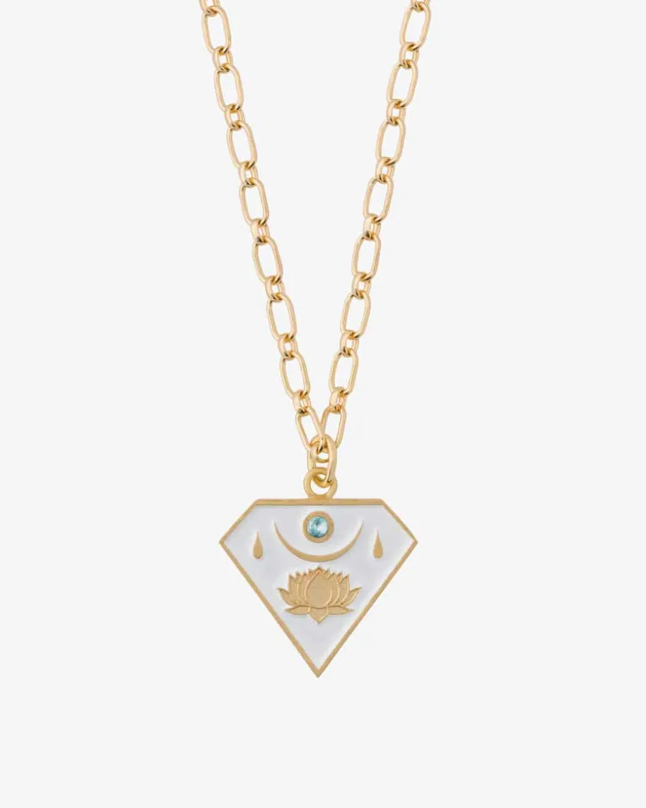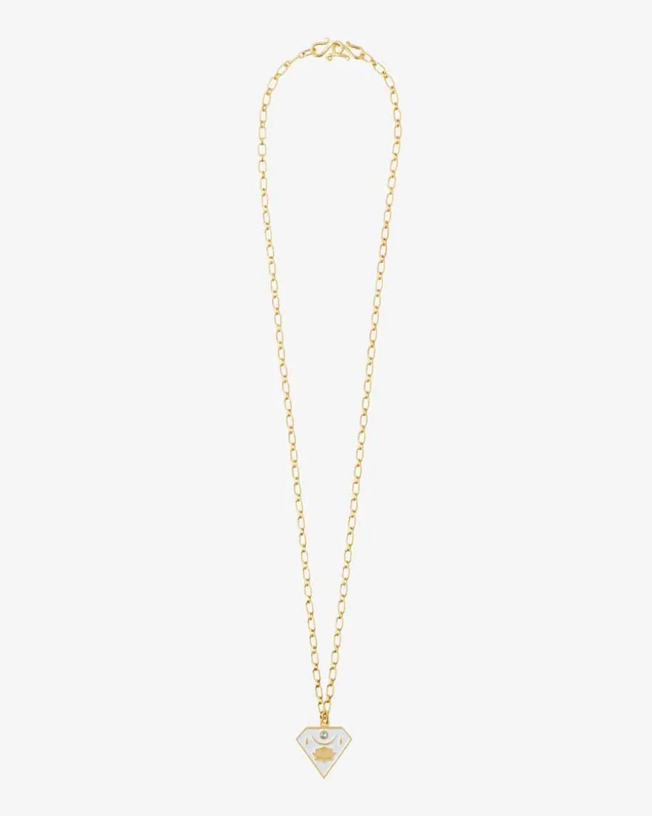 Water Drinking Nectar Halskette mit Anhänger von Maximova in Gold, Weiß undHellblau. Das Schmuckstück begeistert mit einer zarten Gliederkette, während dermit einem Schmuckstein versehene Anhänger besondere Akzente setzt. Mit diesemextravaganten Design verleihen Sie jedem Ihrer Looks einen besonderen Touch.