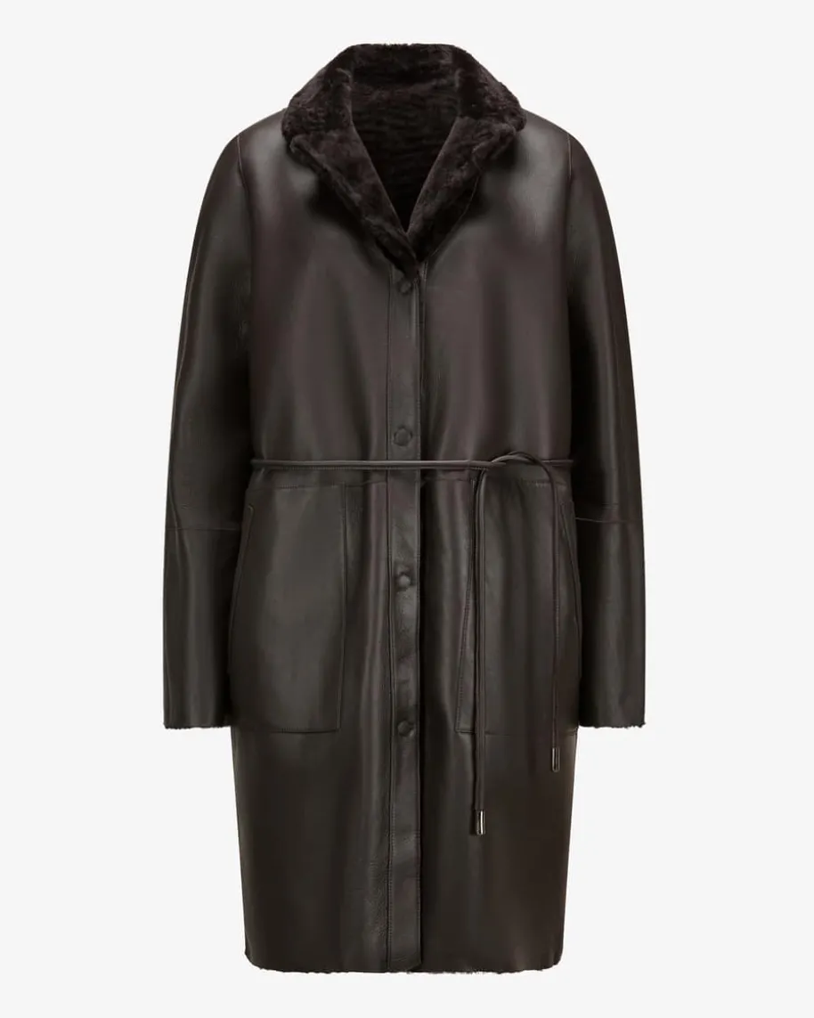 Wende-Fellmantel für Damen von Cinzia Rocca in Dunkelbraun. Das Modell bestichtdank der Wende-Funktion als vielseitiger Favorit für die Übergangszeit, währenddie hochwertige Leder-Qualität sowie die Fell-Aufmachung ein modisches Piece mitangenehmer Haptik schaffen.