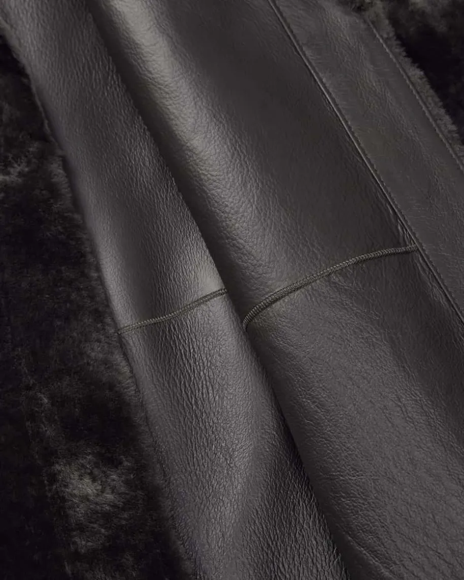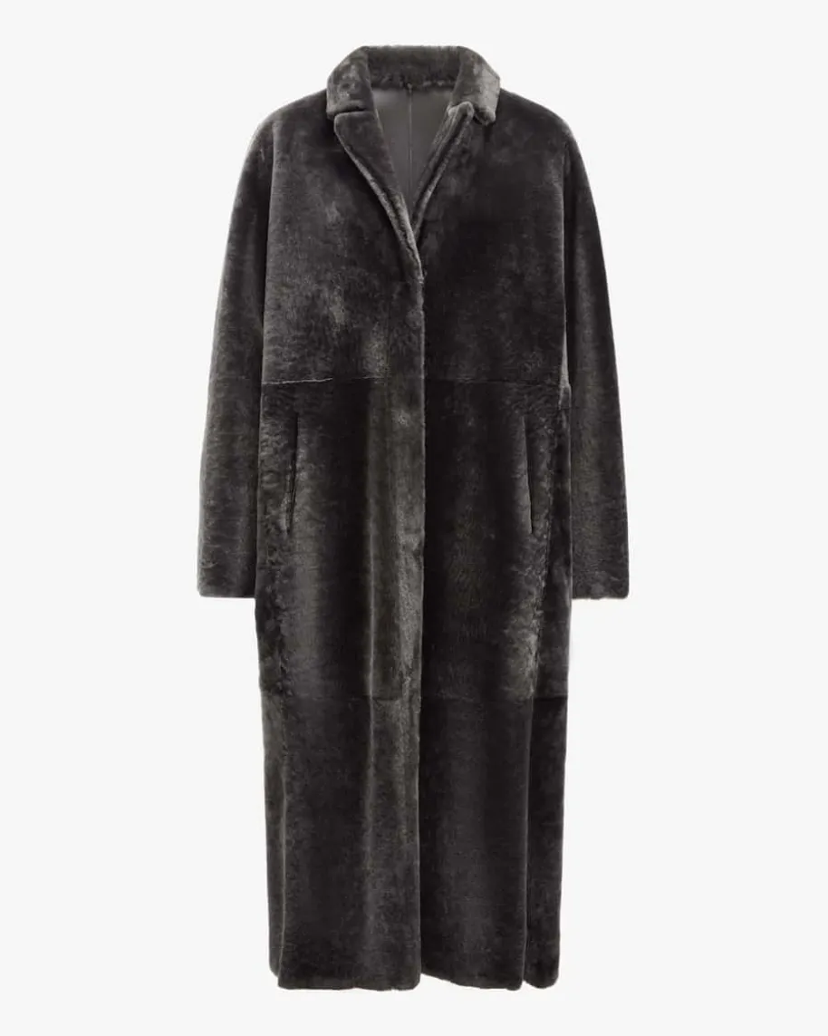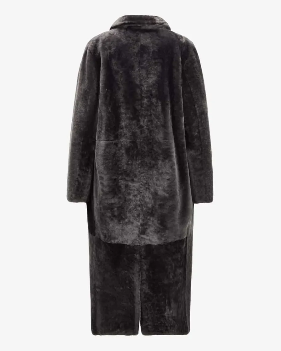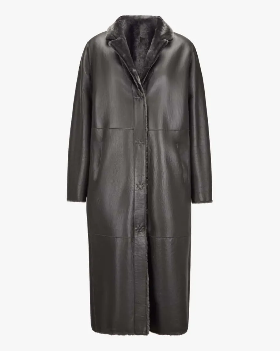 Wende-Lammfellmantel für Damen von Windsor in Anthrazit. Das weit geschnitteneModell zeichnet sich durch die praktische Wende-Funktion aus, wodurch einvielseitiger 2-in-1-Look entsteht. Während das Lammfell mit seiner besondersweichen Haptik punktet, verleiht die fein genarbte Leder-Seite in matter Optikdem Gesamtbild eine edle Note.