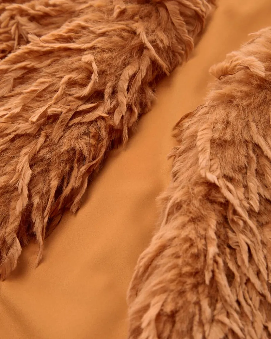 Weste für Damen von Luisa Cerano in Cognac. Das Modell präsentiert sich inextravaganter Fell-/Feder-Optik und ergänzt jedes Outfit mit stilvoller Eleganz,während ein Must-Have für modernes Layering entsteht.