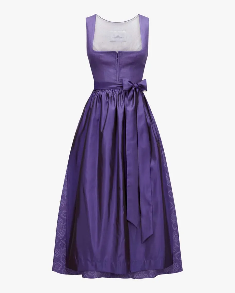Wiesndirndl lang mit Schürze für Damen von LODENFREY in Violett. JahrelangeErfahrung, hochwertige Verarbeitung und viel Liebe zum Detail zeichnen dieexklusiven Kreationen aus. Das Mieder in traditioneller Leinen-Qualität wirddank des gereihten Rocks mit dem floralen Ornamente-Muster stilvoll ergänzt,während die changierende Schürze das hochwertige Gesamtbild gekonnt vollendet.Gleichzeitig verleiht eine raffinierte Herz-Stickerei auf der Rückseite desMieders Ihrem Trachten-Look das gewisse Etwas.