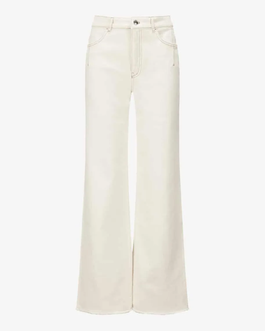 Wigan Jeans High Waist Wide Fit für Damen von Marc Cain in Creme. Das Modellpunktet dank der weiten Passform sowie offener Säume als modisches Highlight,während die hohe Bundhöhe sowie die elastische Baumwoll-Qualität den perfektenSitz versprechen.