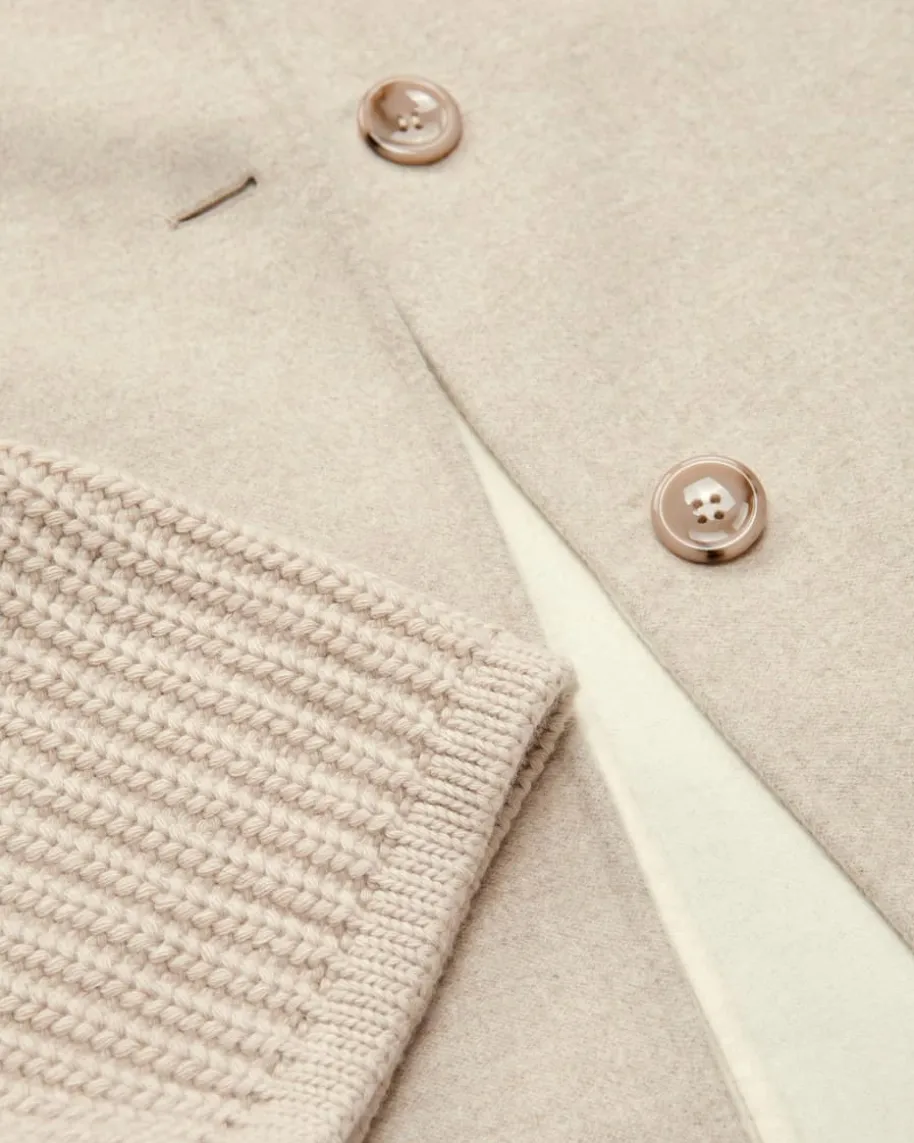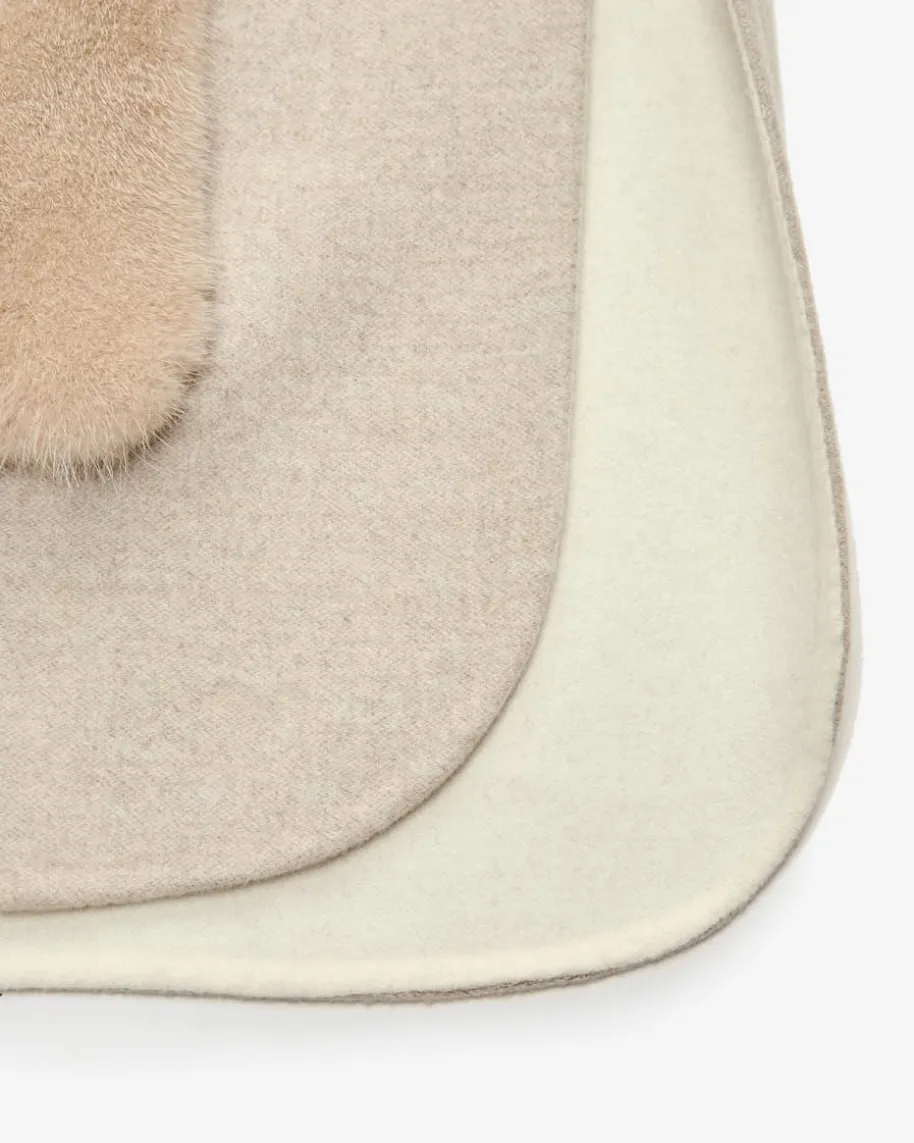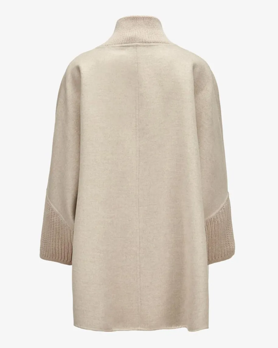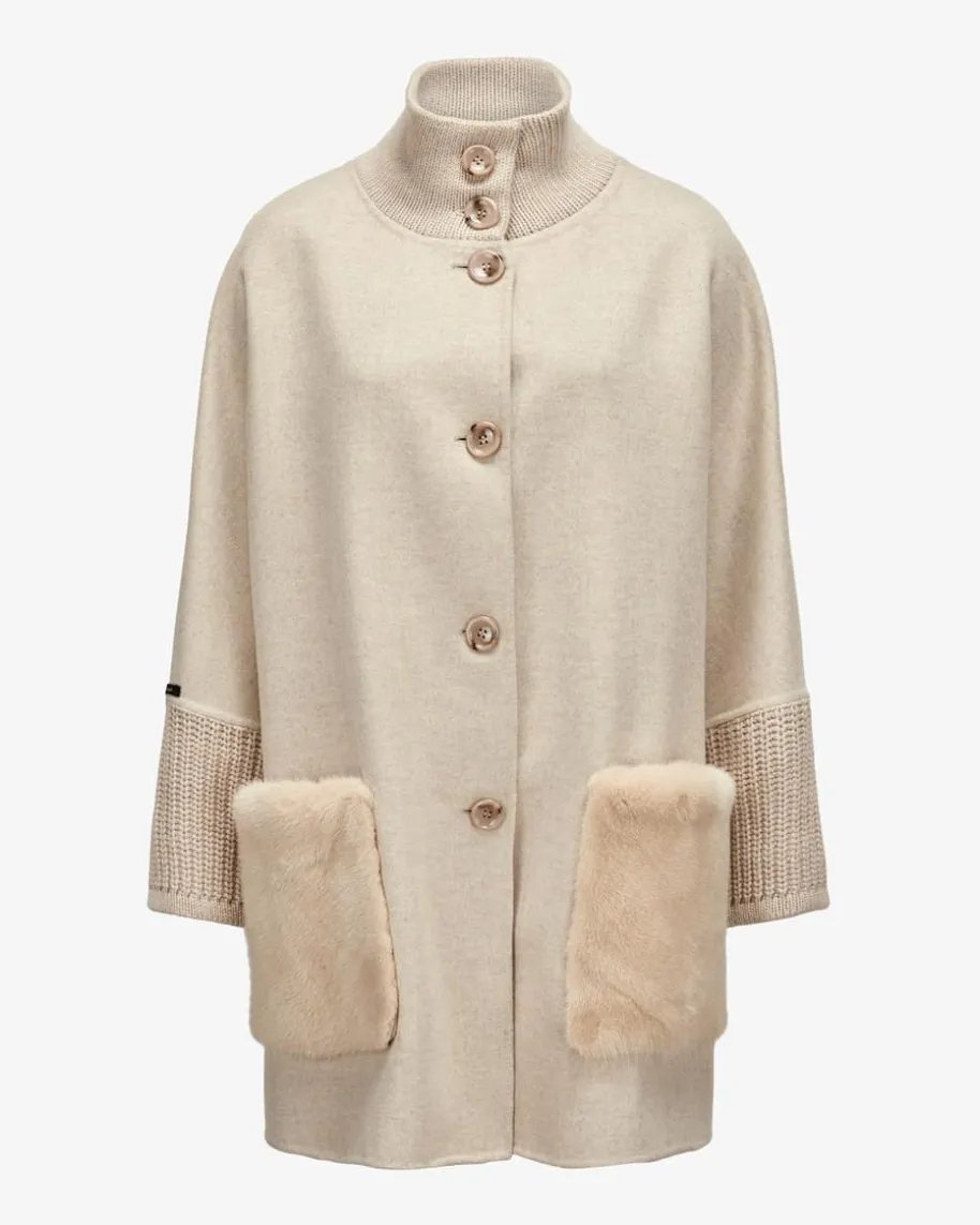Wollcape für Damen von Manzoni 24 in Sand. Gefertigt aus einem Mix aushochwertiger Schurwolle und Cashmere, besticht das Modell mit einereinzigartigenHaptik, während Details aus Rippstrick und Echtpelz modische Akzente setzen.