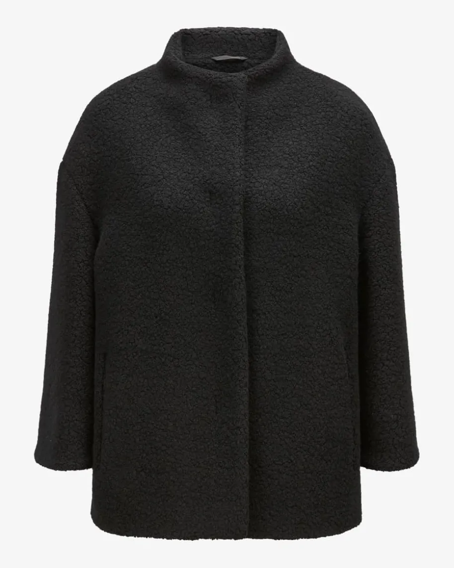 Wolljacke für Damen von Cinzia Rocca in Schwarz. Seit den 1980er-Jahren stehtCinzia Rocca Damenmode für Urban Couture Luxus. Auch dieses Modell zeichnet sichdurch die Verwendung von hochwertigem Woll-Mix in weicher Bouclé-Optik aus,während die weite Passform mit verkürzten Ärmeln dem minimalistischen Look einenlegeren Charakter verleiht.