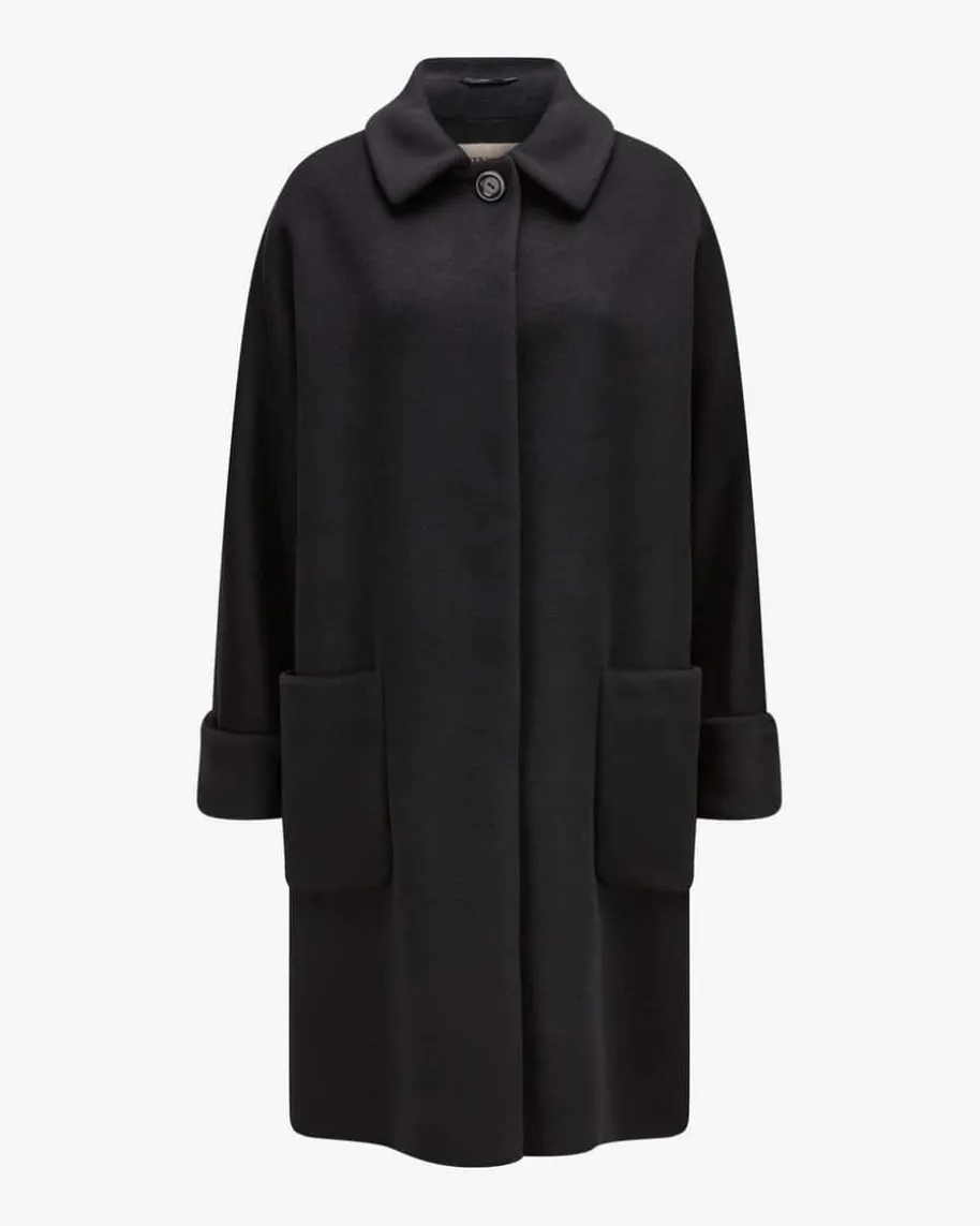 Wollmantel für Damen von Cinzia Rocca in Schwarz. Seit den 1980er-Jahren stehtCinzia Rocca Damenmode für Urban Couture Luxus. Auch dieses Modell punktet mitder Verwendung von hochwertiger Woll-Qualität, während die weite Passform mitumgeschlagenen Ärmeln den modernen Look gekonnt in Szene setzt.