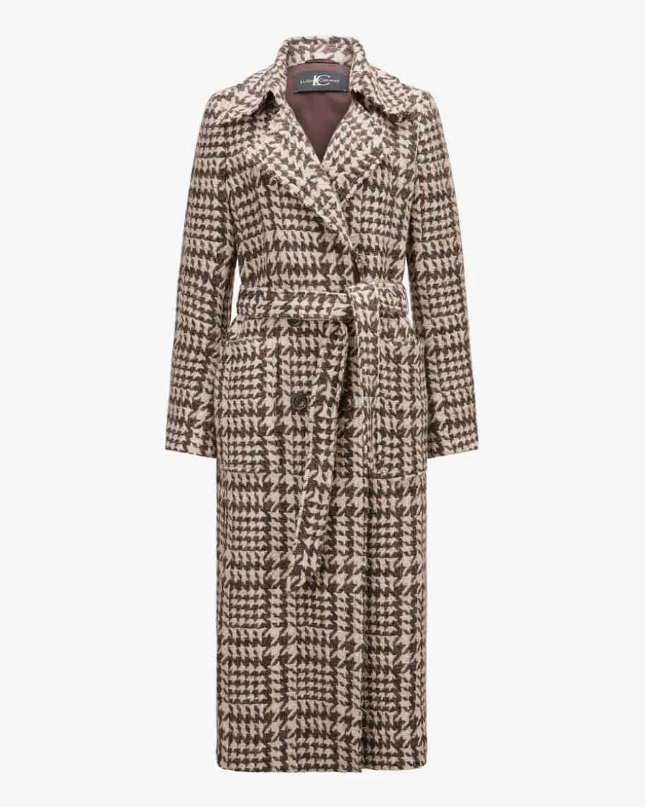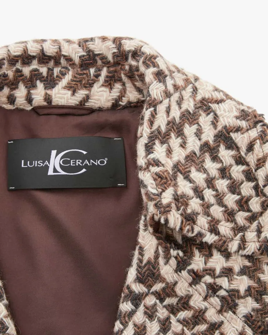 Wollmantel für Damen von Luisa Cerano in Braun, Beige und Creme. Das Modell aushochwertiger Schurwolle überzeugt mit angenehmen Tragemomenten, während dieklassische Aufmachung mit dem markanten Pepita-Muster einen modischen Begleiterfür stilvolle Übergangslooks schafft.
