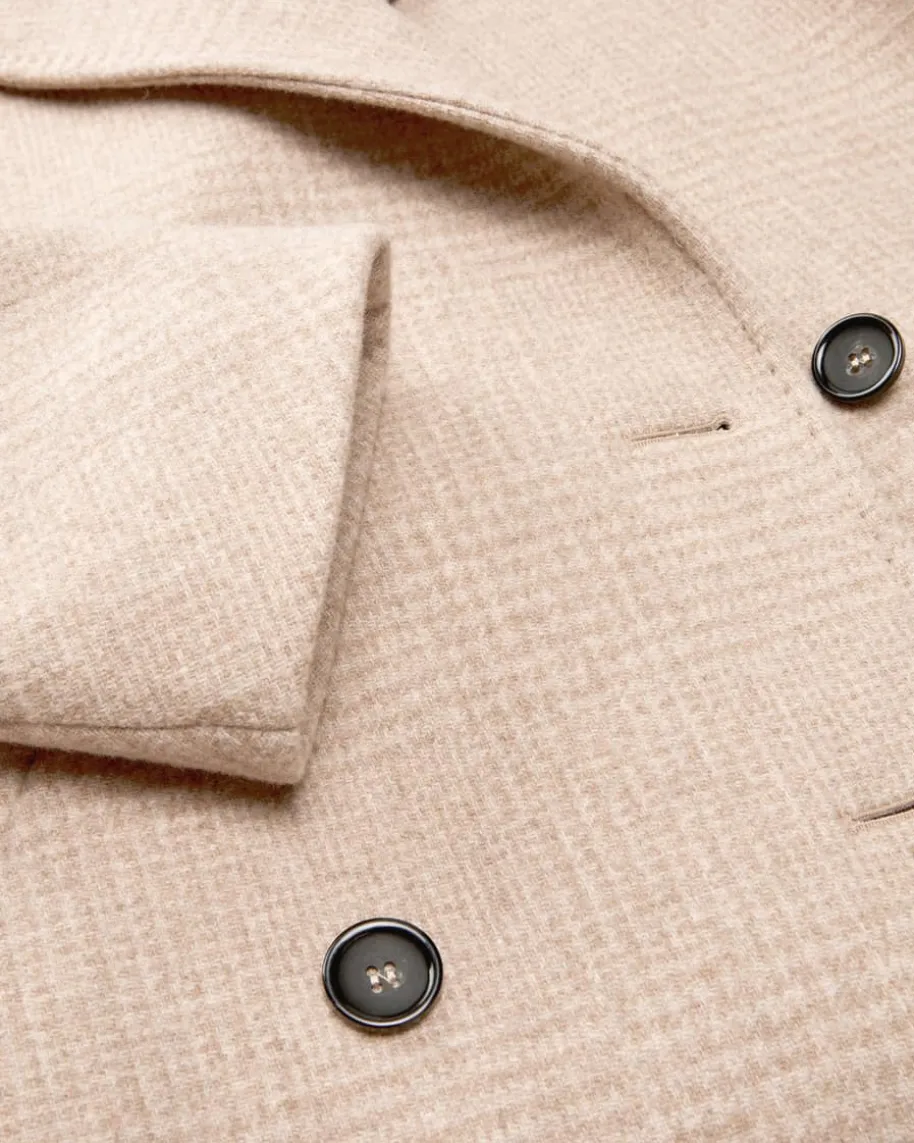 Wollmantel für Damen von Cinzia Rocca in Beige. Seit den 1980er-Jahren stehtCinzia Roccas Damenmode für Urban Couture Luxus. Auch dieses Modell punktet mitder Verwendung von hochwertigem Schurwoll-Mix, während die weite Passform mitdoppelreihiger Knopfleiste sowie dem feinen Hahnentritt-Muster einen modernenCharakter verleiht.