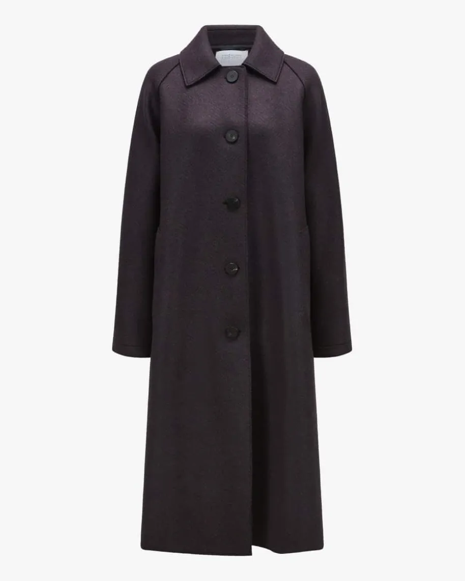 Wollmantel für Damen von Harris Wharf London in Dunkelblau und Kastanie. DieBritische Marke, die klassische Outerwear mit moderner Klarheit neuinterpretiert – gefertigt in Italien. Dank hochwertigem Schurwoll-Cashmere-Mixin Doubleface-Verarbeitung überzeugt dieses Modell in Fischgrät-Design, währendder Raglanärmel den Gesamtlook harmonisch abrundet und einen zeitlosen Begleiterfür die Übergangszeit kreiert.